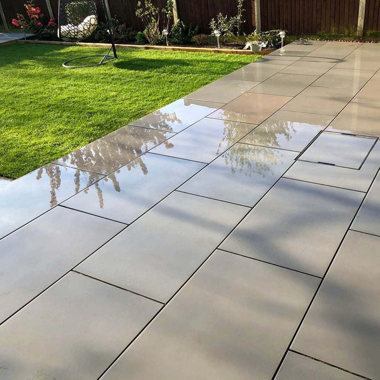 Each Aravalli Grey slab is sawn directly from the block and honed, creating a smooth, flat surface with a subtle sheen. The machine-cut, bevelled edges complete the refined, contemporary aesthetic, giving your patio a sleek and polished finish.