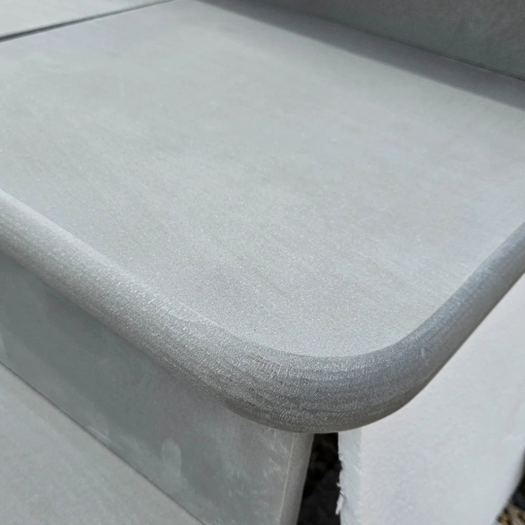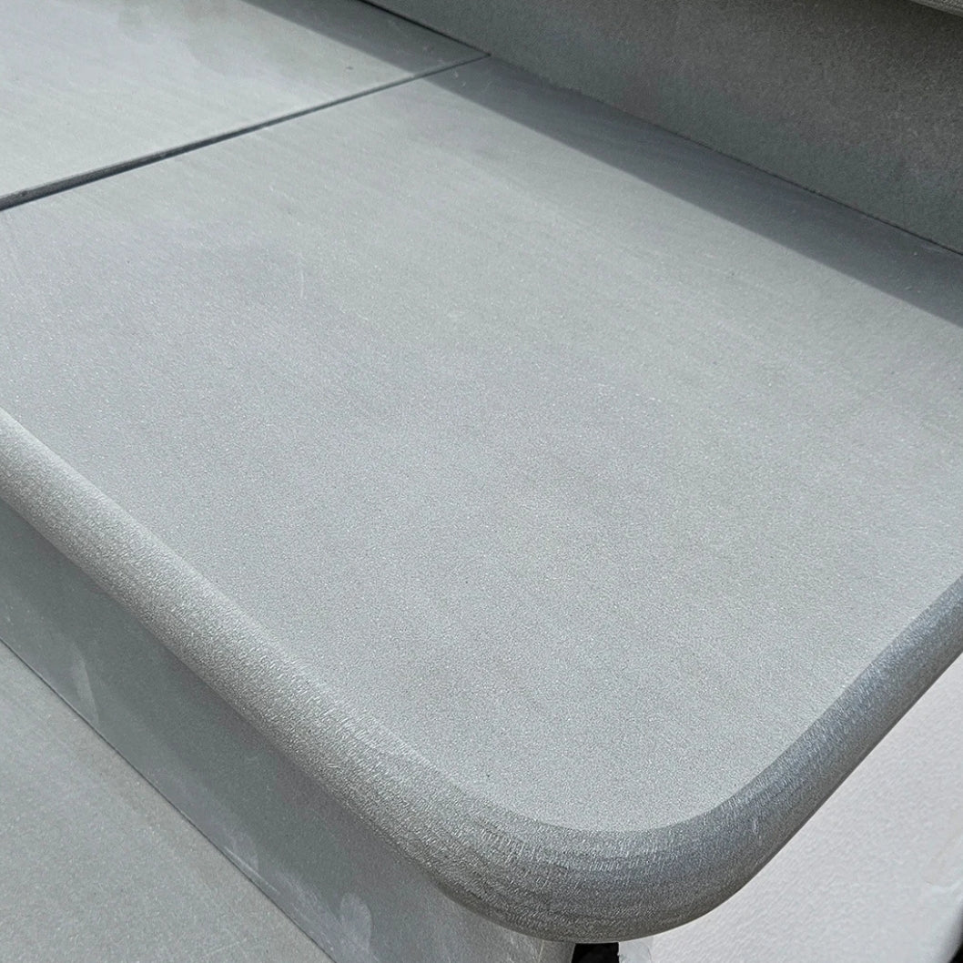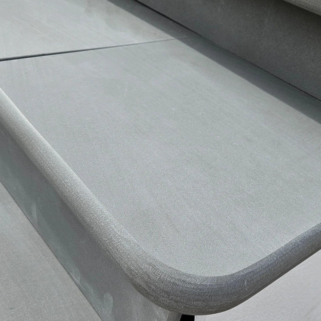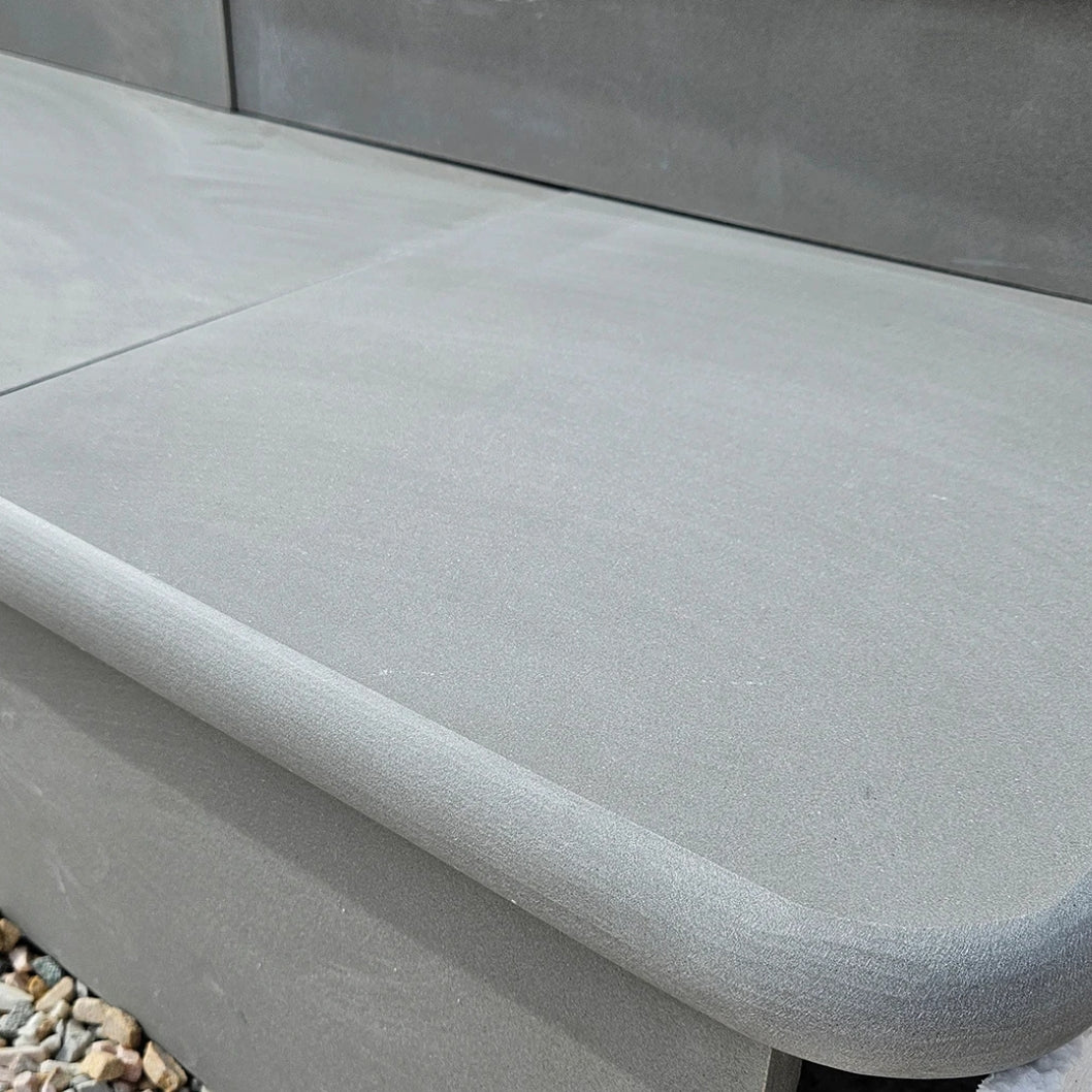 Aravalli Grey Indian Sandstone is celebrated for its refined tones of soft silver and cool grey, giving any garden or patio a modern and timeless appeal. Each step corner is **precision sawn and honed** to deliver a smooth surface with a subtle sheen, perfectly balancing elegance and functionality. The **double bullnose edges** add a rounded, high-end finish while also helping to protect the corners from chips and damage.