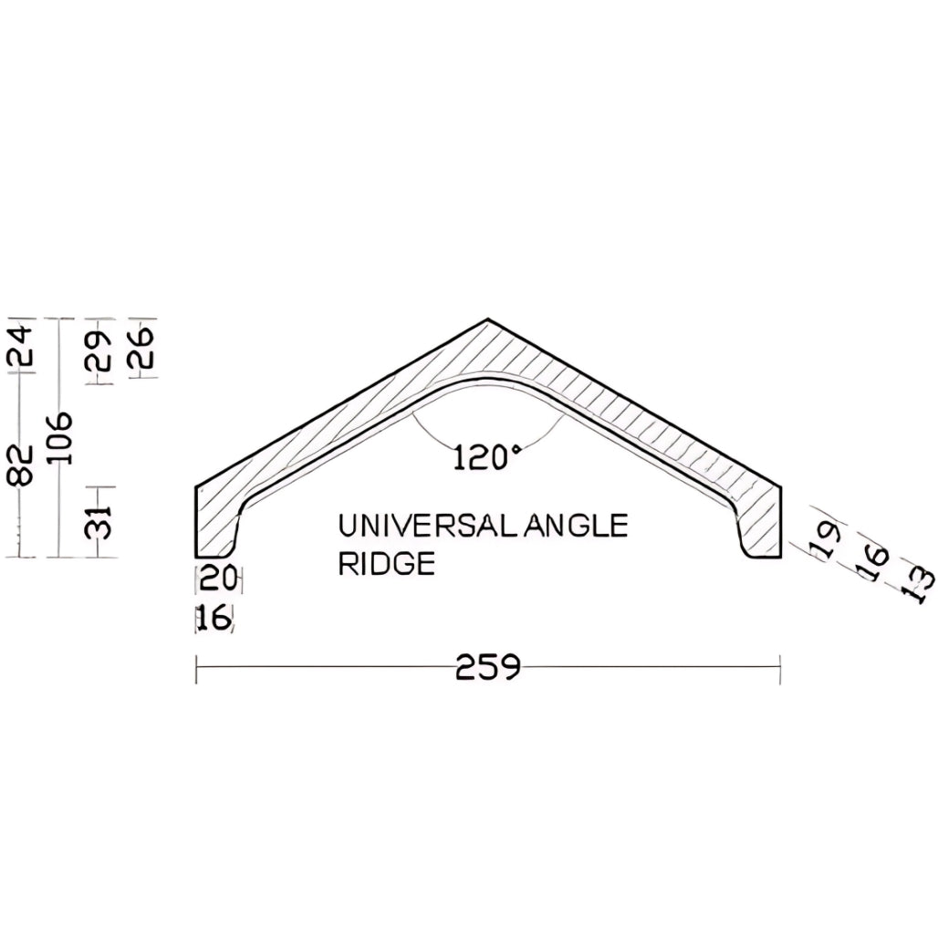 The BMI Redland Universal Angle Ridge Tile is a reliable and stylish solution for finishing the ridge line on pitched roofs. Specifically designed to work in harmony with concrete flat tiles and slates, this ridge tile offers both practical performance and design flexibility. Whether you're looking to achieve a perfectly coordinated look or introduce a subtle contrast, the Universal Angle Ridge allows you to do both with ease.