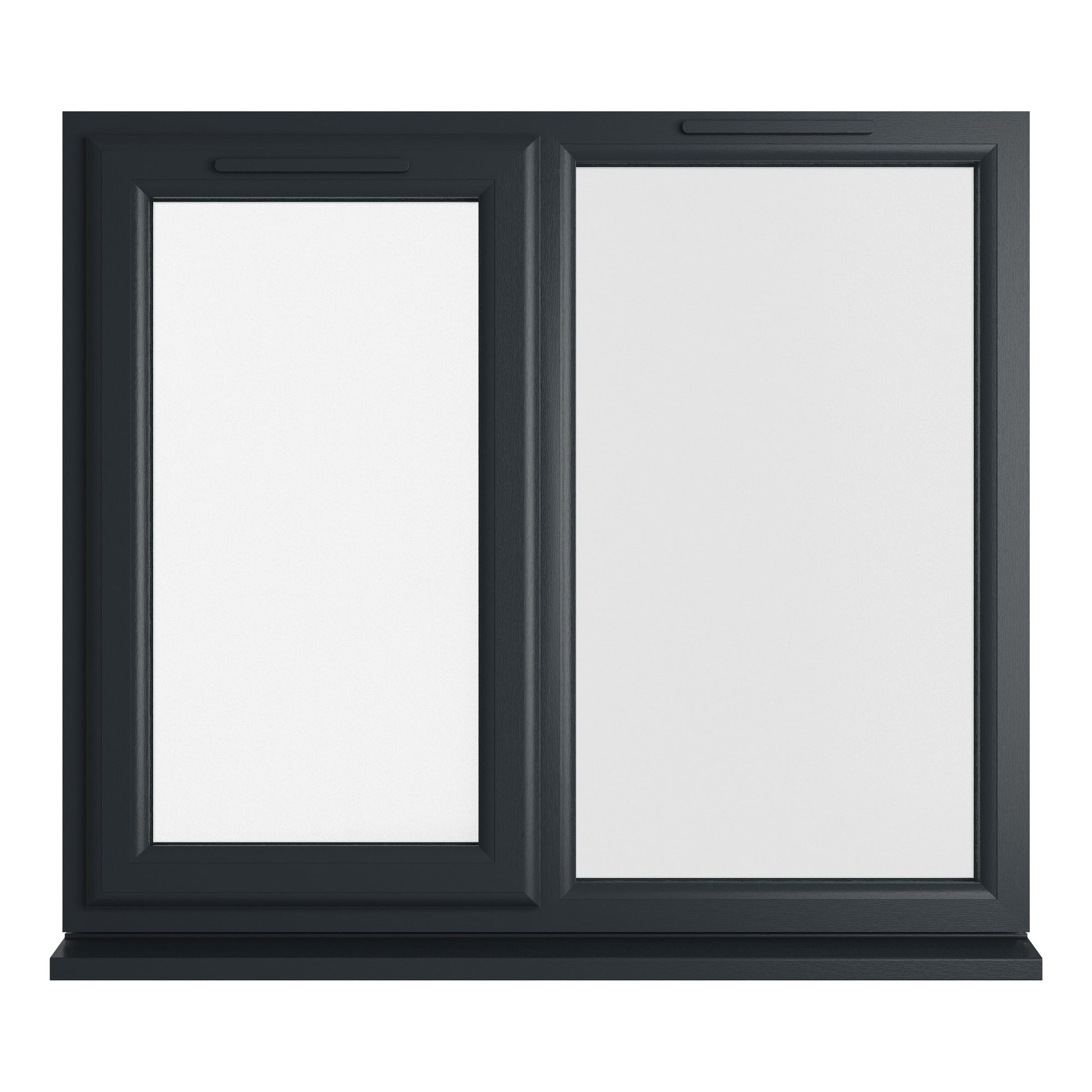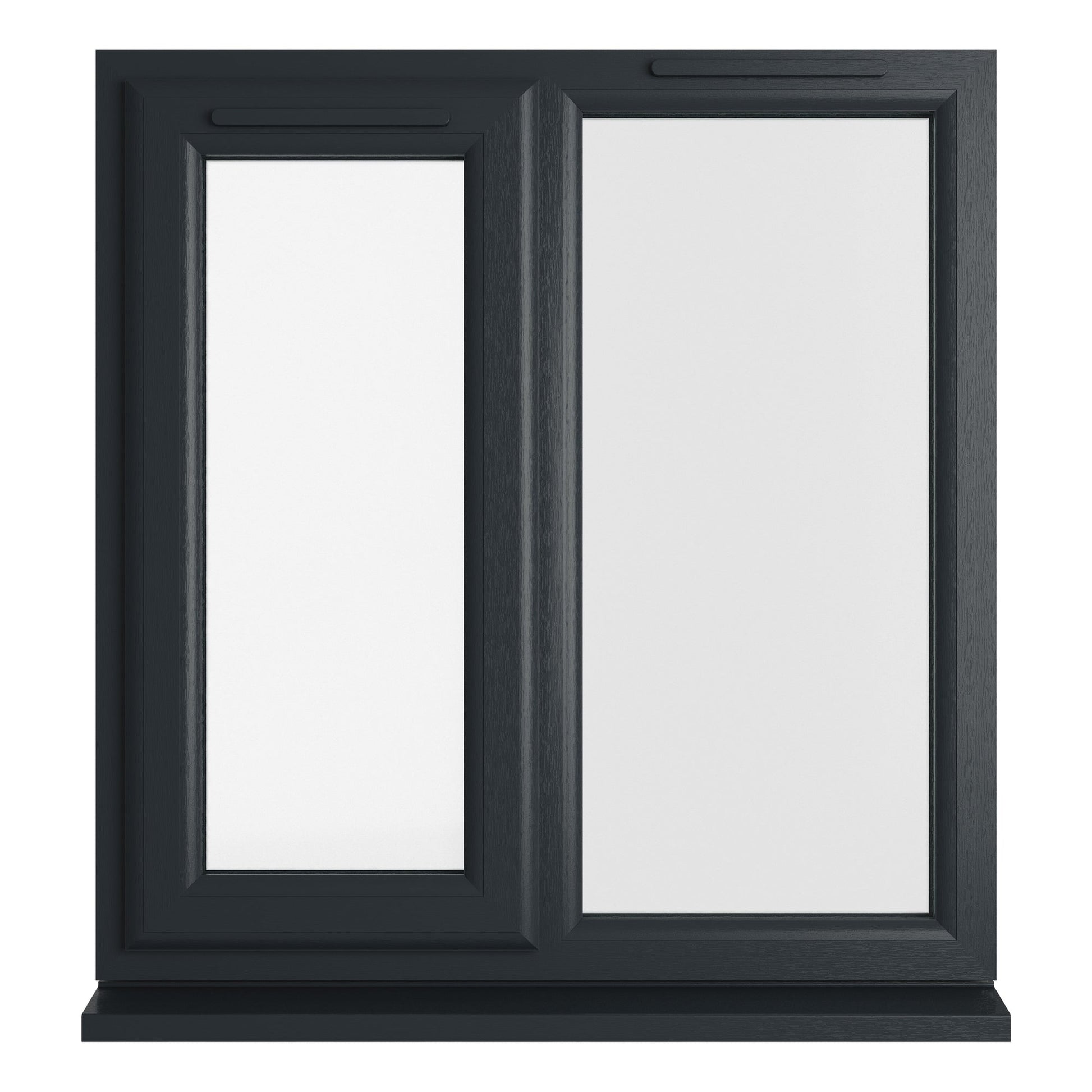 The Crystal uPVC Window Grey 7016 external White Internal A Rated Left Hand Side Hung Next to a Fixed Light Clear Glazing is double glazed using a high energy efficient glazing unit. Featuring espag locking, trickle ventilation and comes with handle, PVC cill and glazing packers to glaze the unit. It measures with the overall height including the cill. All product handings are viewed from the outside.