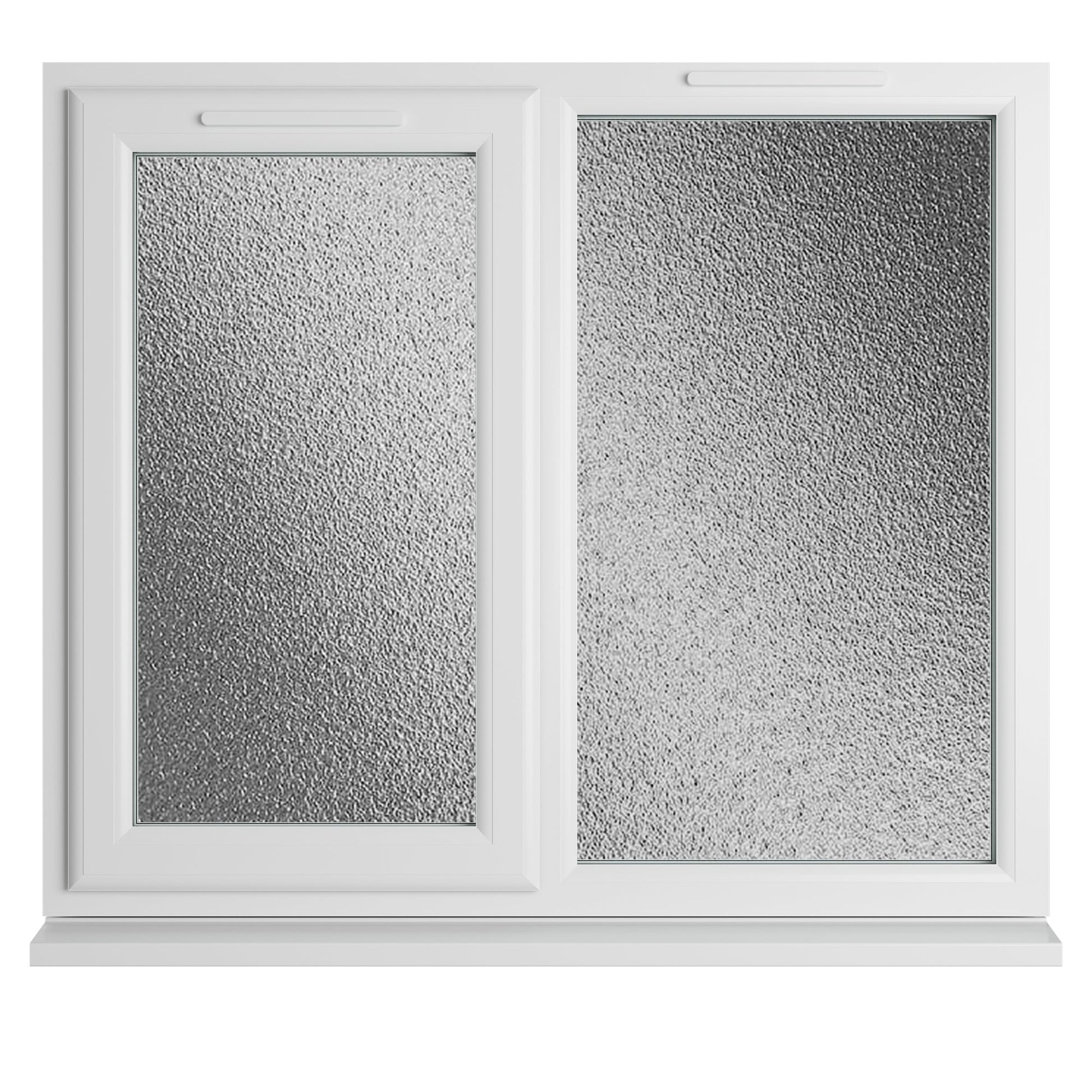 The Crystal uPVC Window White A Rated Left Hand Side Hung Next to a Fixed Light Obscure Glazing is double glazed using a high energy efficient glazing unit. Featuring espag locking, trickle ventilation and comes with handle, PVC cill and glazing packers to glaze the unit. It measures with the overall height including the cill. All product handings are viewed from the outside.