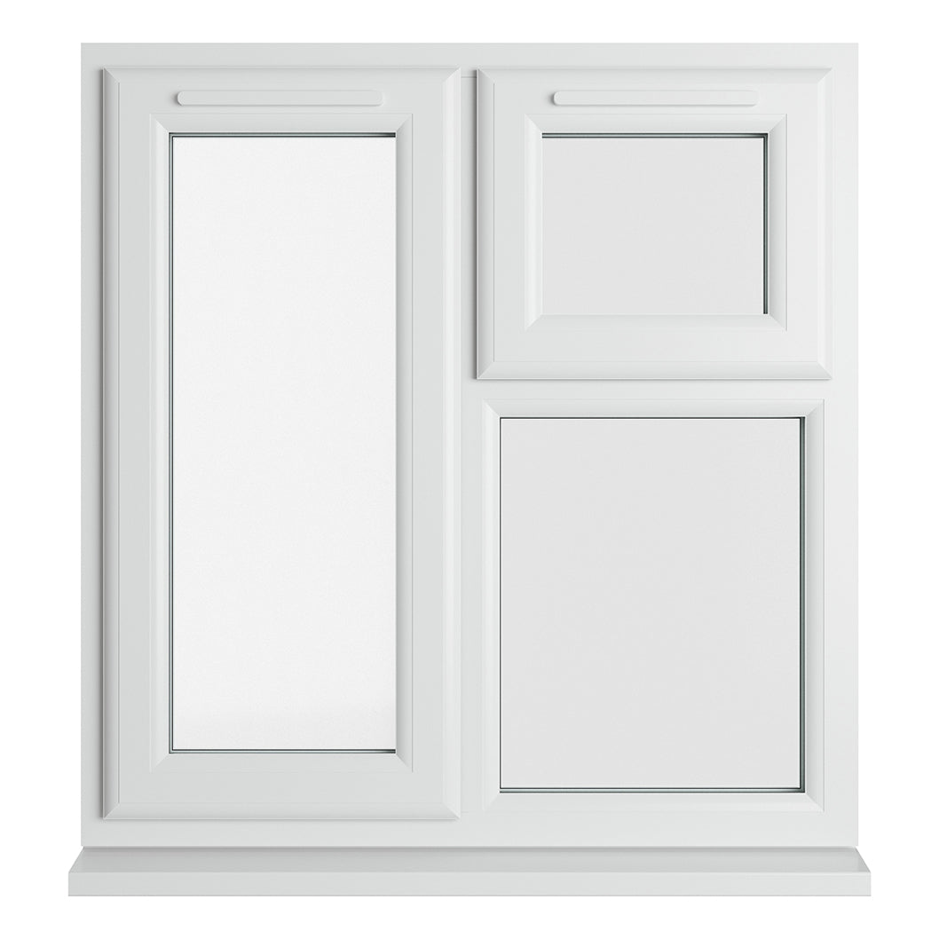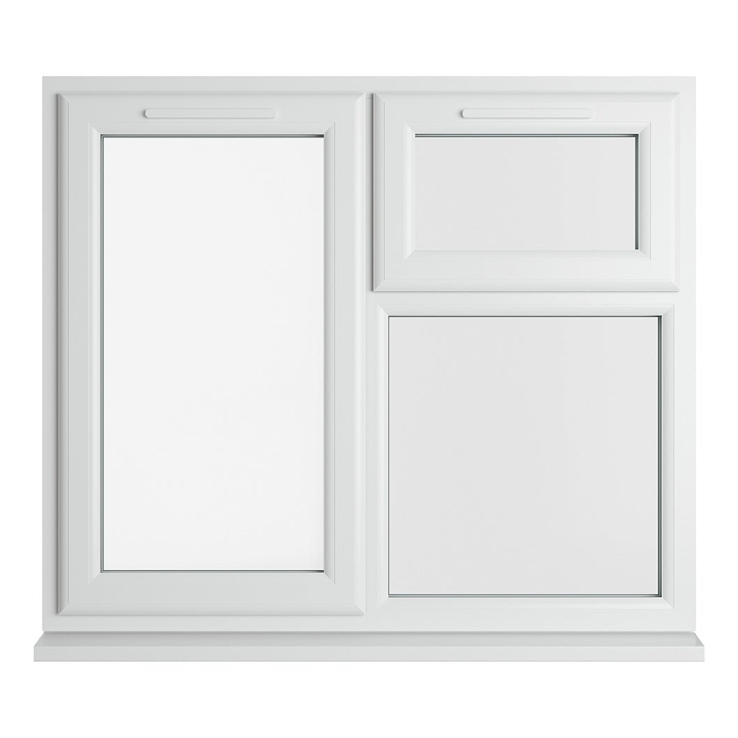 The Crystal uPVC Window White A Rated Left Hand Side Hung Next to a Top Opener Over a Fixed Light Clear Glazing is double glazed using a high energy efficient glazing unit. Featuring espag locking, trickle ventilation and comes with handle, PVC cill and glazing packers to glaze the unit. It measures with the overall height including the cill. All product handings are viewed from the outside.