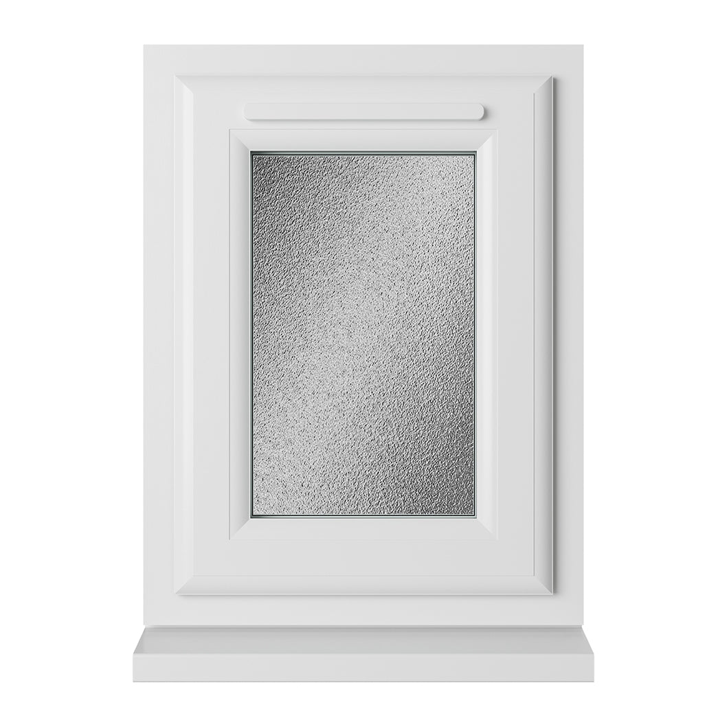 The Crystal uPVC Window White A Rated Top Opener Obscure Glazing is double glazed using a high energy efficient glazing unit. Featuring espag locking, trickle ventilation and comes with handle, PVC cill and glazing packers to glaze the unit. It measures with the overall height including the cill. All product handings are viewed from the outside.