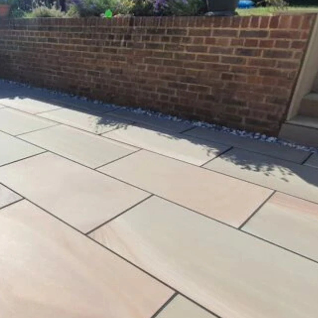 Cut straight from the block before being refined, each slab is machine-cut on all edges for a crisp, precise profile. Consistently calibrated to 20mm, installation is straightforward, while the stone’s natural durability makes it ideal for year-round use in the British climate. Despite its smooth surface, the sandstone still maintains a natural level of slip resistance, making it a safe and practical choice for outdoor areas.