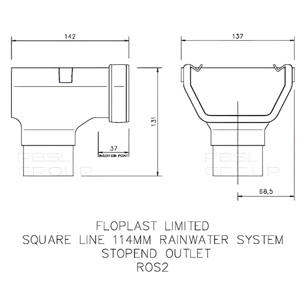 Floplast Square 114mm Stop End Outlet For Gutter