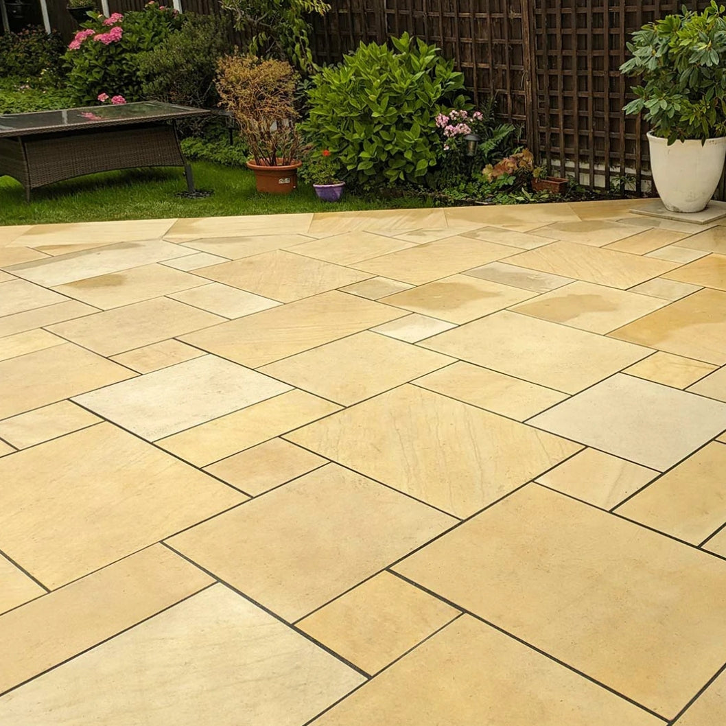 As with all natural sandstone, variations in colour, tone, and veining are a feature, not a flaw. Each slab is a unique piece of nature, creating a patio that is as individual as your home. Colours appear richer when wet and more subtle when dry, giving your garden a dynamic and changing appearance throughout the seasons.