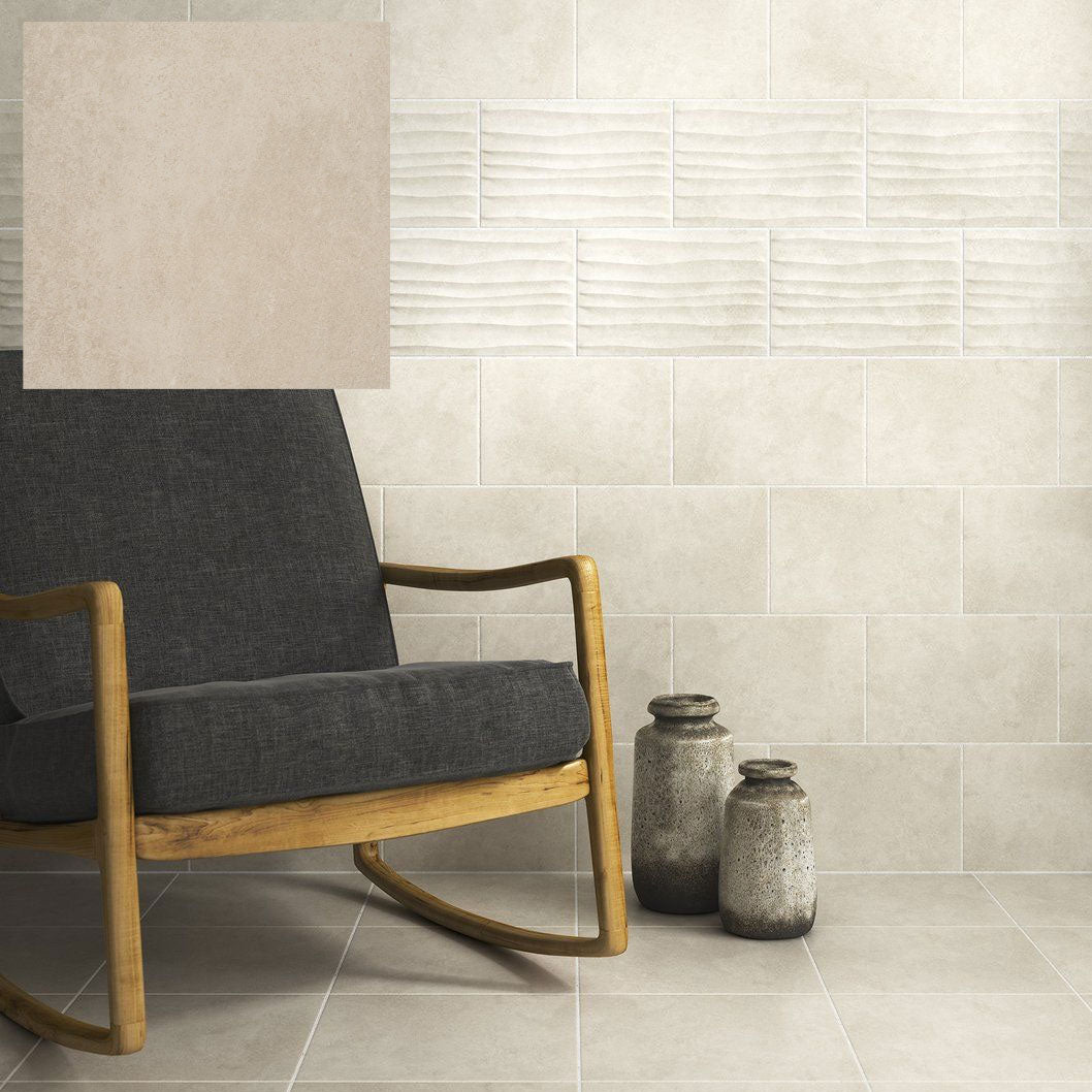 For extra visual interest, wave décor tiles are available in matching tones. These textured tiles provide a subtle three-dimensional effect, perfect for creating a feature wall or highlighting a splashback. To complete the look, co-ordinating 305x305mm porcelain tiles are available for use on both walls and floors, making it easy to carry the same style throughout your space.