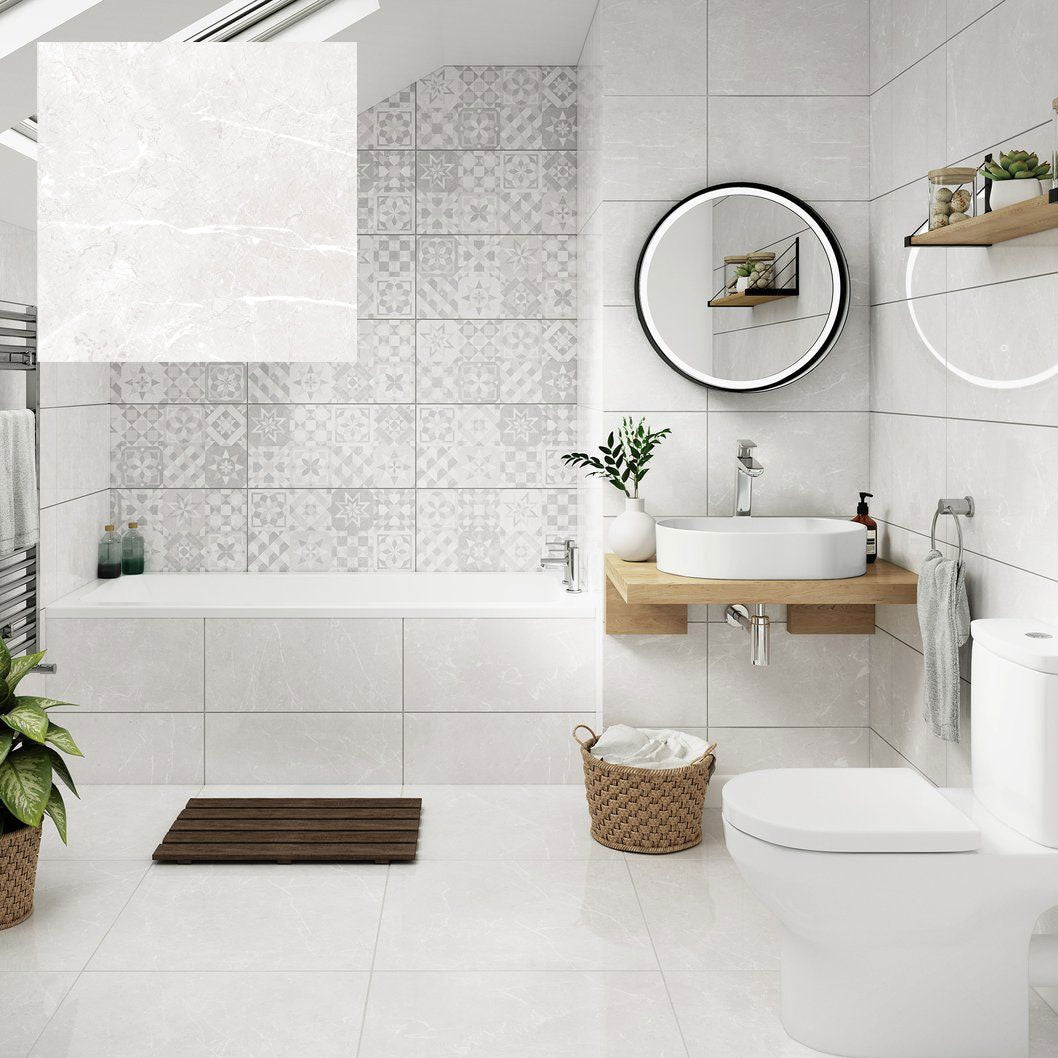 The Darlington collection from Johnson Tiles brings together the elegance of traditional marble and the sophistication of modern design. Inspired by natural stone veining, Darlington features delicate marble-effect patterns across a contemporary palette of neutral tones, making it a stylish choice for a variety of interiors.