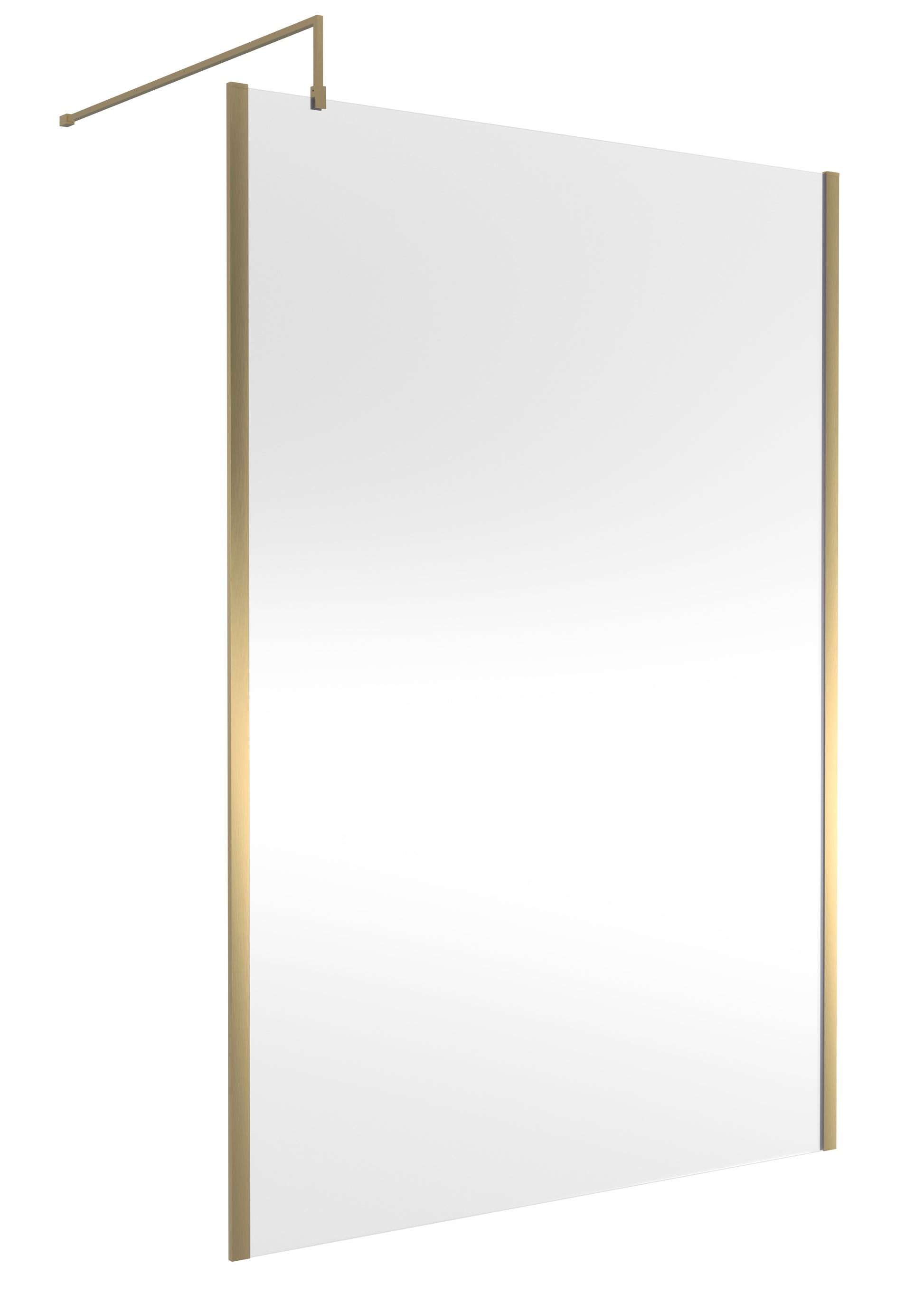 Nuie Brushed Brass 1400mm Outer Framed Wetroom Screen with Support Bar Aluminium
