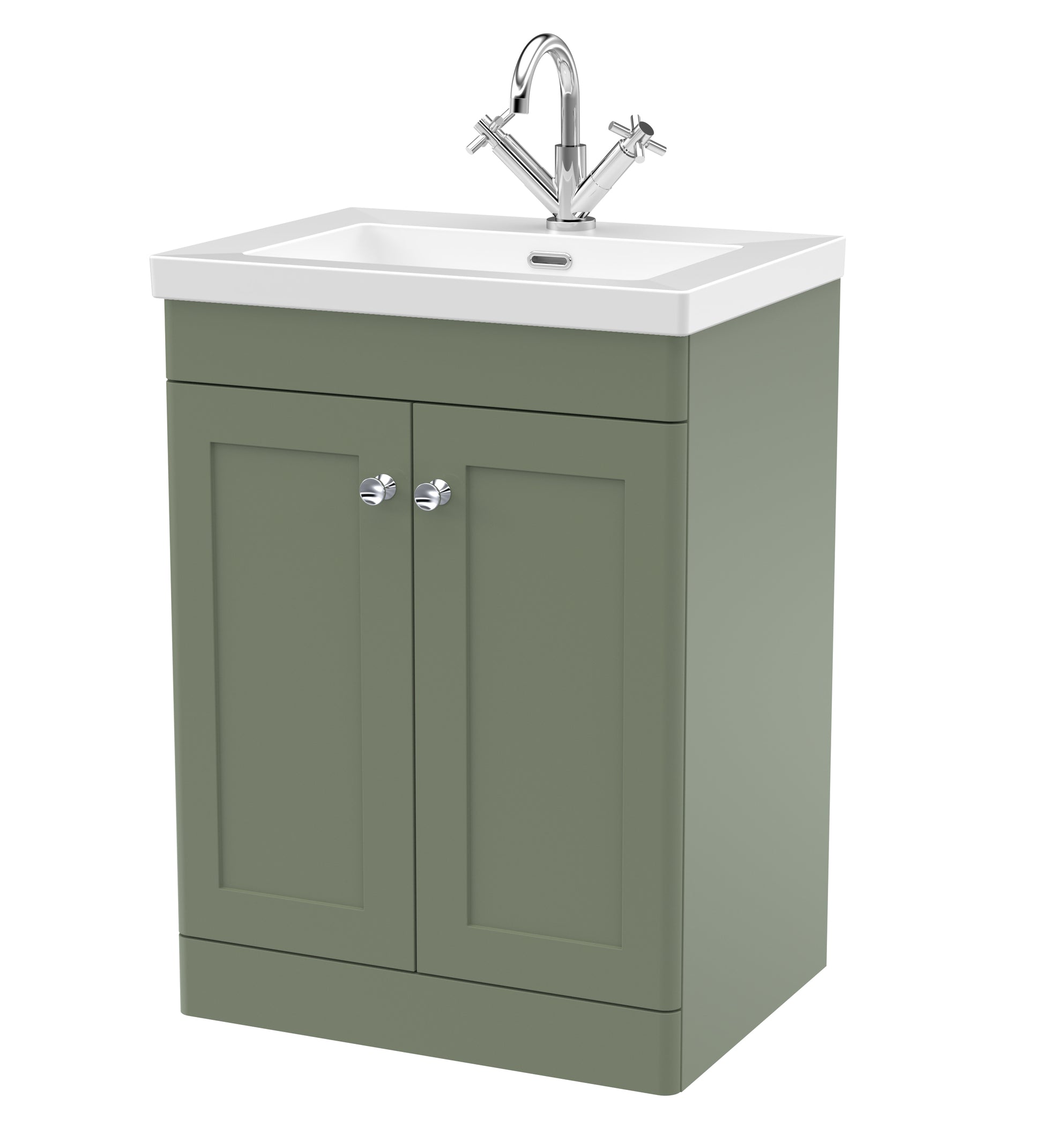 Nuie Satin Green 600mm Floor Standing 2-Door Vanity with Basin - 1 Tap Hole Fireclay