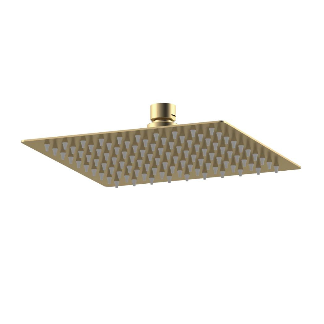Square minimalist design with brushed brass finish. Manufactured from stainless steel for durability. 1/2" BSP swivel connector. Rub-clean nozzles. Suitable for wall mounted or ceiling arms.60x200x200mm