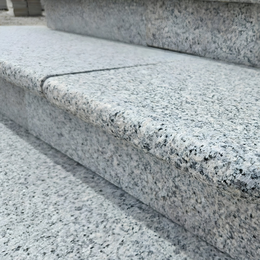 Our Polished Silver Granite Bullnose Steps offer a sleek, modern way to elevate any outdoor space. With their elegant blend of silver, grey, white and black speckles, these steps instantly brighten a garden, patio or landscaped area. Whether you're creating a smooth transition between levels, designing stylish pool surrounds, or finishing a raised seating area, these steps provide both practicality and visual impact.