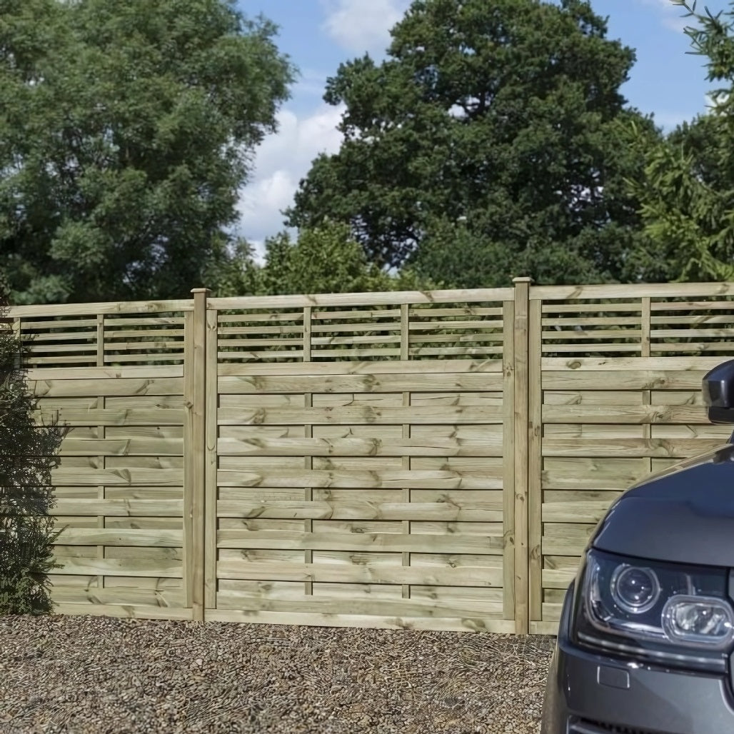 Built with 70x40mm heavy-duty framing, this screen is solidly constructed for long-term use. The horizontal slatted design ensures a sleek look, while the open bar detailing at the top adds lightness and decorative appeal without compromising privacy. Thanks to the pressure-treated finish, the timber is protected against rot and insect attack—making it suitable for all weather conditions.