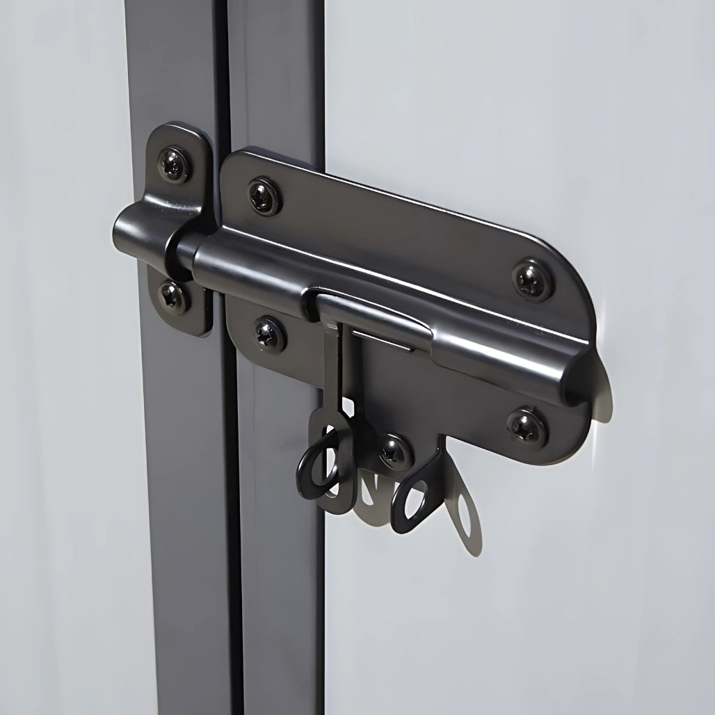 With its larger size, this model features double doors positioned on the 8ft side for easy access—even when storing bulkier items like wheelbarrows or lawnmowers. The doors can be locked with a padlock (not supplied), helping to keep your belongings secure. Additional features include two side windows for natural light and gable vents to promote airflow and reduce condensation.