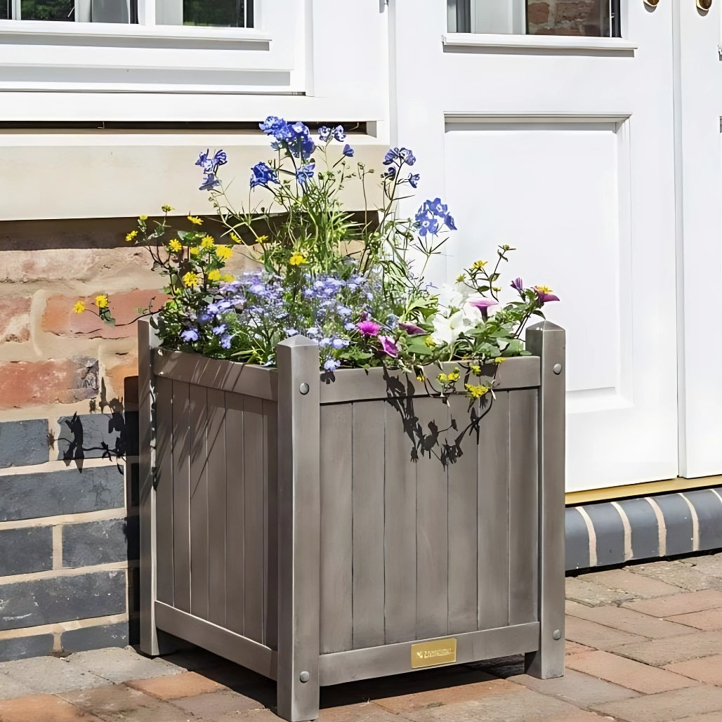Made from hardwood timber for long-lasting durability Finished in a contemporary grey wash with a protective lacquer coating Stylish square design adds structure and height to your garden Generous 50-litre capacity suitable for a range of plants Ideal for patios, balconies, and garden borders External Dimensions: H485 x W415 x D415 mm