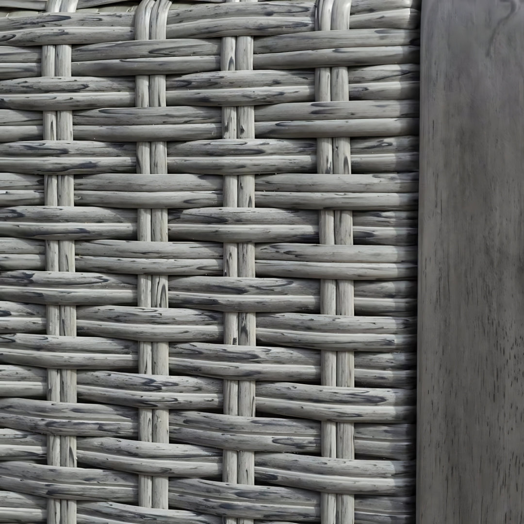 Crafted with a strong hardwood timber frame, the bench is wrapped in a weatherproof rattan-effect weave and finished with a durable lacquer coating. Not only does it look good, but it’s built to withstand the elements.