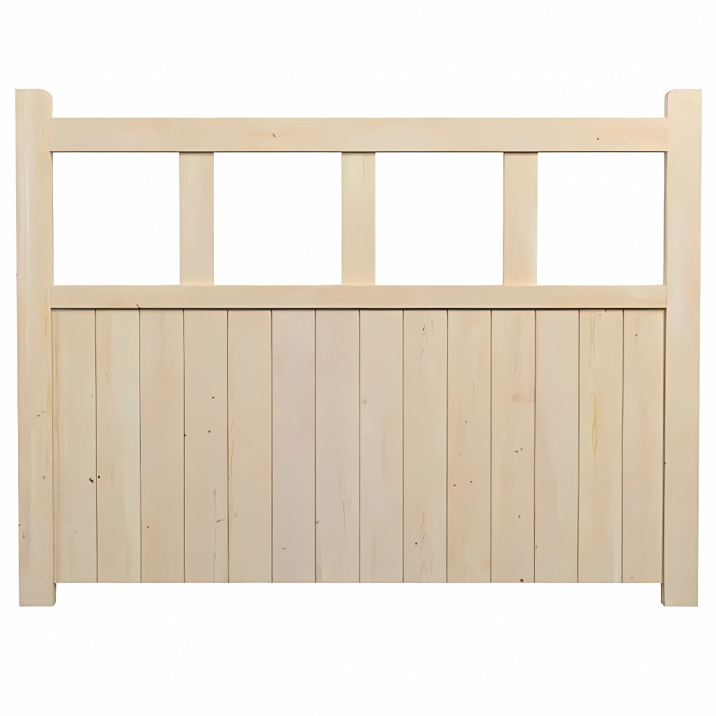 Cottage-style wooden gate kit for garden or pedestrian access Vertical 12mm tongue and groove cladding with open slatted top Can be built to fit openings between 760mm and 1205mm wide Use two gates side-by-side for a driveway up to 2.4m wide Sturdy 60x43mm framing for durability Untreated kiln-dried European softwood—paint or stain to suit your style Sustainably sourced timber, flat packed for home assembly Posts, hinges, and latches sold separately