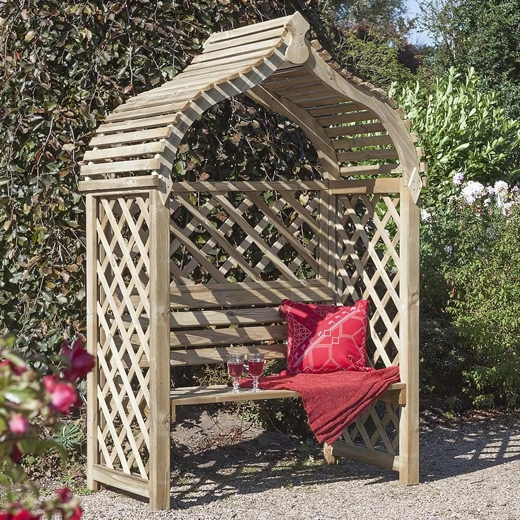 Designed for straightforward setup, the Jaipur Arbour comes with comprehensive instructions and all necessary fittings, making assembly easy with just two people. The compact footprint makes it a great choice for smaller gardens or patios while still providing plenty of seating space.