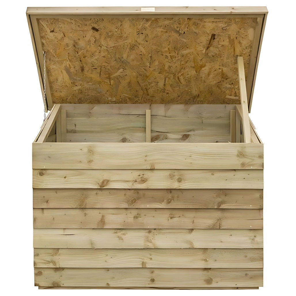 Crafted from pressure-treated timber and supplied in a natural finish, this chest is both durable and versatile. The overlap cladding gives it a classic, rustic appearance, while the mineral-felted roof and moisture-resistant OSB base add strength and weather resistance. Whether you use it for gardening gear, cushions, or toys, it’s a handy addition to any patio or outdoor space that blends seamlessly into its surroundings.