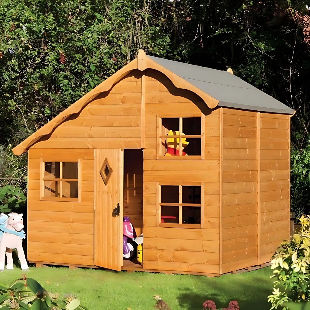 The structure is made from 12mm kiln-dried European tongue and groove shiplap cladding, with a matching tongue and groove floor. The roof is constructed from moisture-resistant OSB and finished with mineral felt for protection against the elements. The dipped honey-brown finish adds a warm, cottage-style look that fits beautifully in any garden.