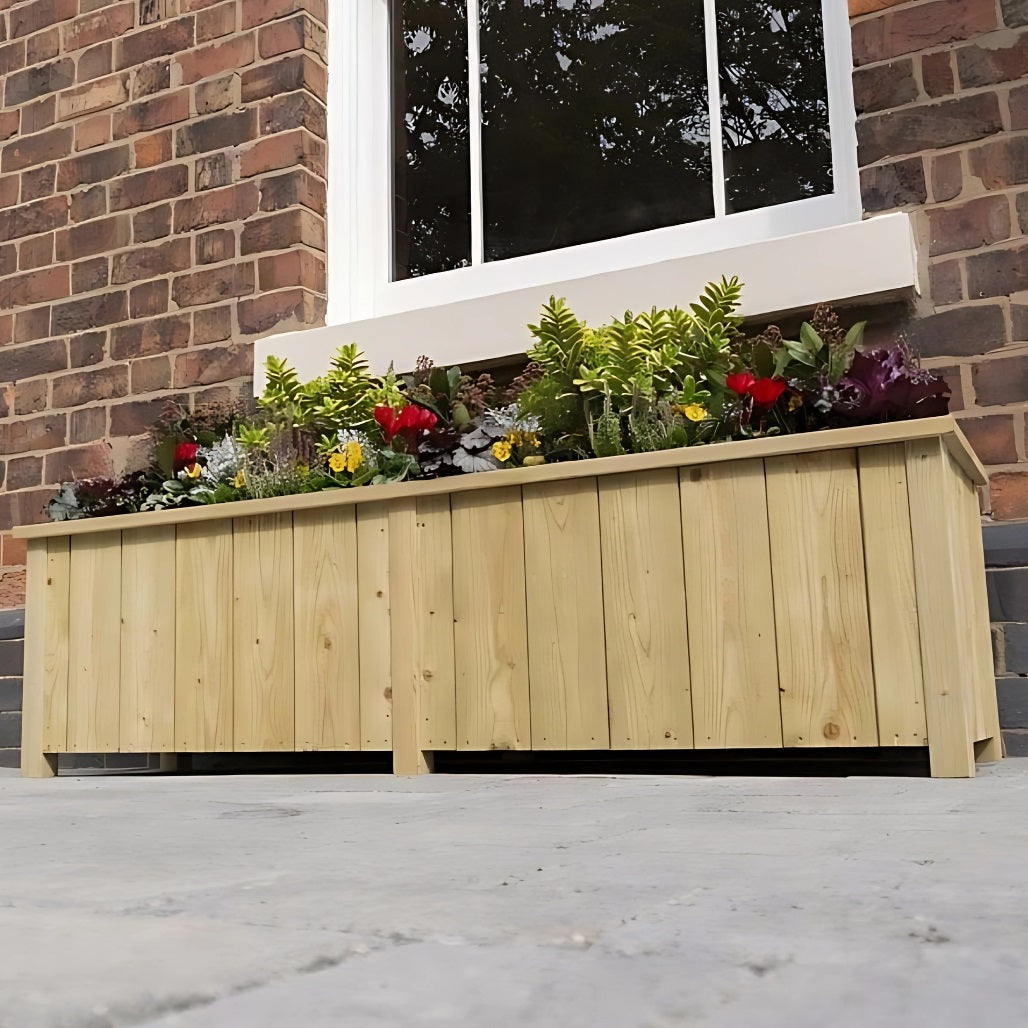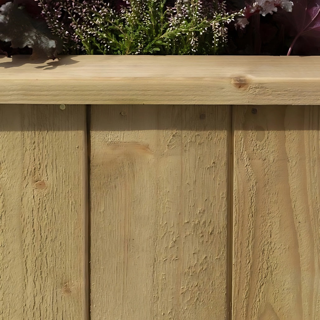 Crafted from pressure-treated timber, this planter is built to last and is naturally protected against rot and insect damage, making it a reliable option for year-round use. It features elegant 12mm fine sawn tongue-and-groove cladding, smooth planed legs, and a mitred corner top surround that offers a refined and polished look.