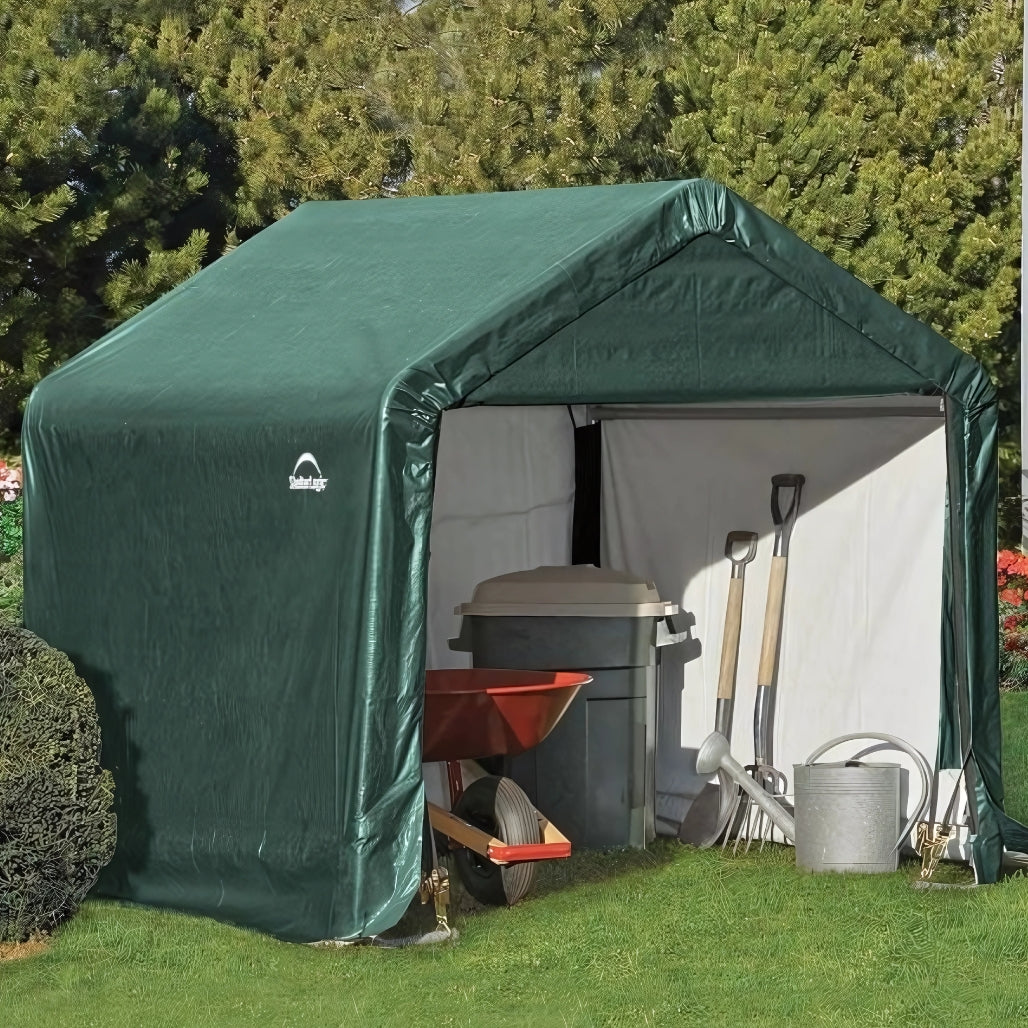 The shed is designed for straightforward setup. With the easy-slide cross rail system and ratchet-tight cover tensioning, most people find it quick and simple to install, even without specialist tools.