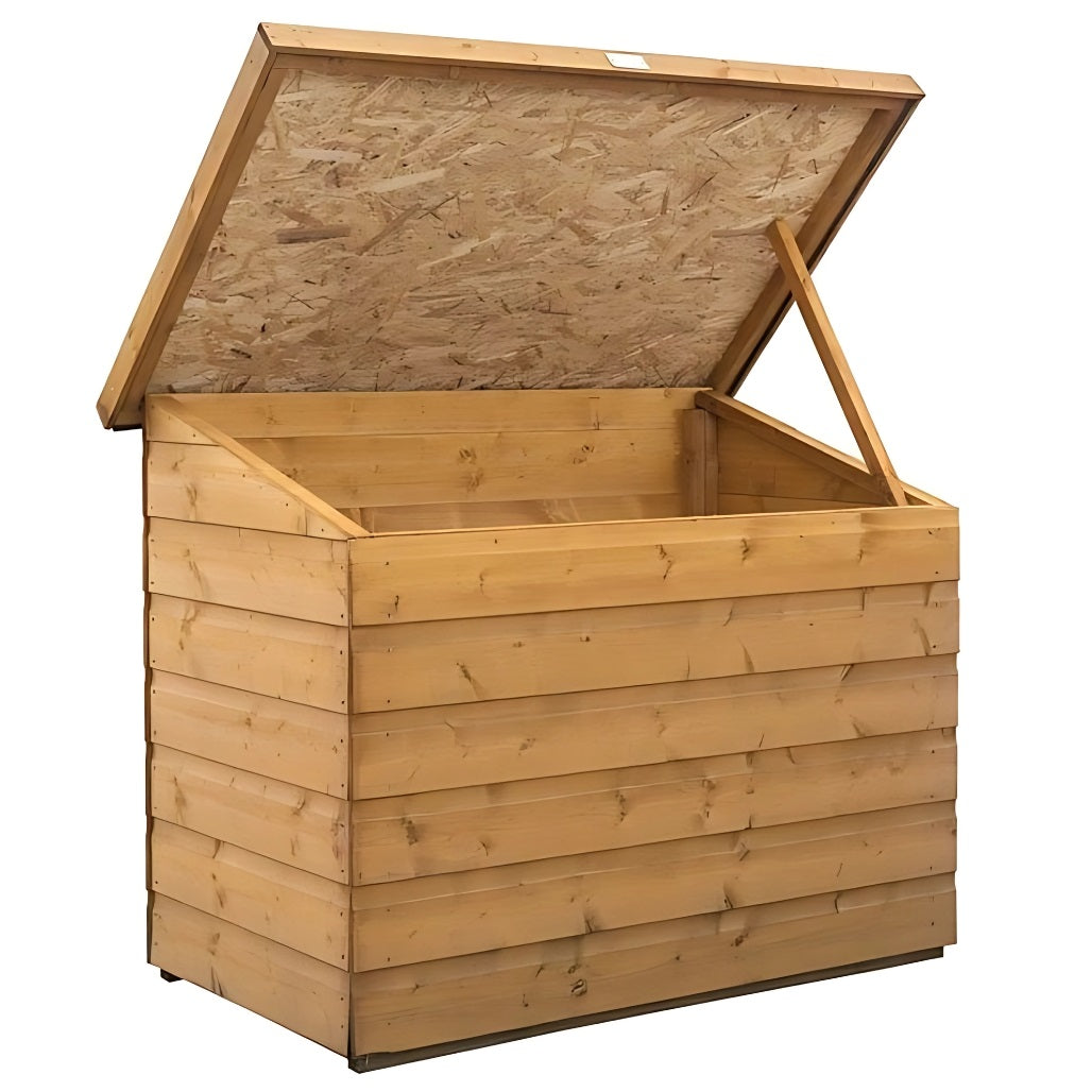 Crafted from 12mm kiln-dried European tongue and groove shiplap cladding, the chest boasts a charming dipped honey-brown finish that gives it a warm, natural look. If you prefer a different aesthetic, the timber is ready to be painted or stained to suit your garden's colour scheme. Sustainability is also a key feature, with all wood responsibly sourced in line with strict environmental standards.