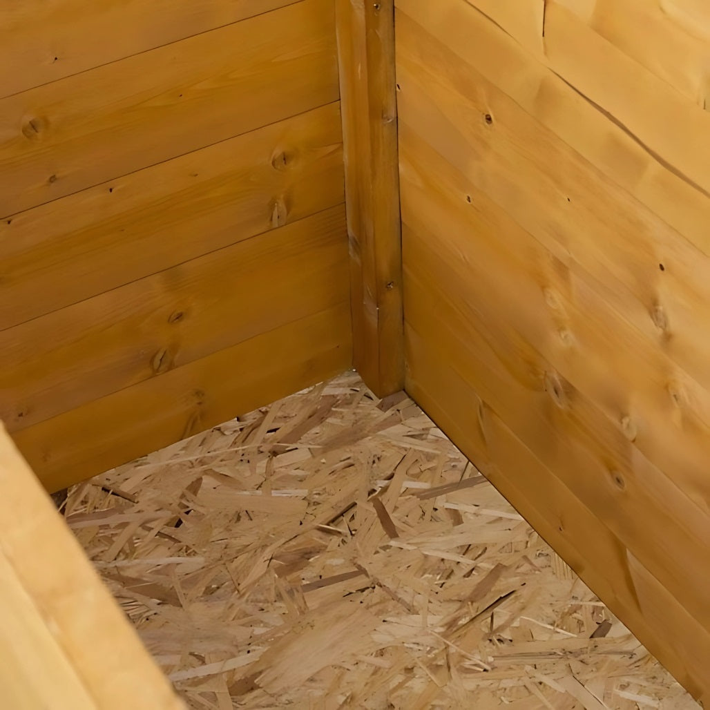 The chest features a lifting lid with a stay, making it easy to open and access the contents without the lid falling shut. Built with durability in mind, it includes a solid board roof and a floor made from construction-grade, moisture-resistant OSB — ensuring strength and stability through all seasons.