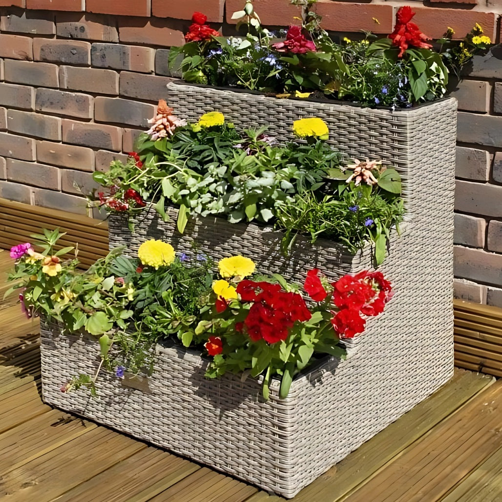 The tiered design is ideal for trailing plants, herbs, and compact flowering plants. It works well for both decorative and practical planting.