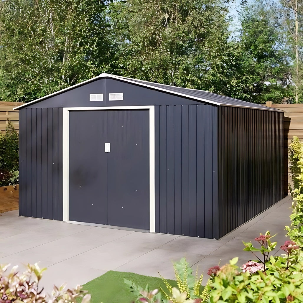 The Rowlinson Trentvale 10x12ft Metal Apex Shed is a spacious and stylish solution for organising your garden essentials. Whether you're storing large equipment, outdoor furniture, or using it as a DIY workspace, this shed offers exceptional space and protection—without the upkeep of a traditional wooden shed.