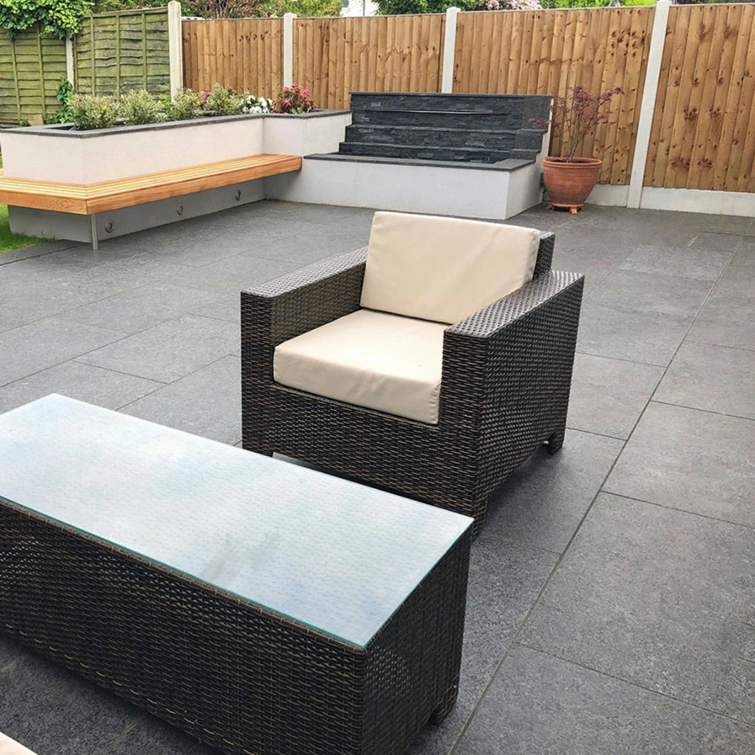 Shadow Black Granite Paving Slabs – 20mm are a bold and contemporary choice for any outdoor space. Featuring a mix of deep black and subtle grey speckles, these granite slabs create a striking, modern finish that instantly elevates the look of any garden, patio, or pathway.