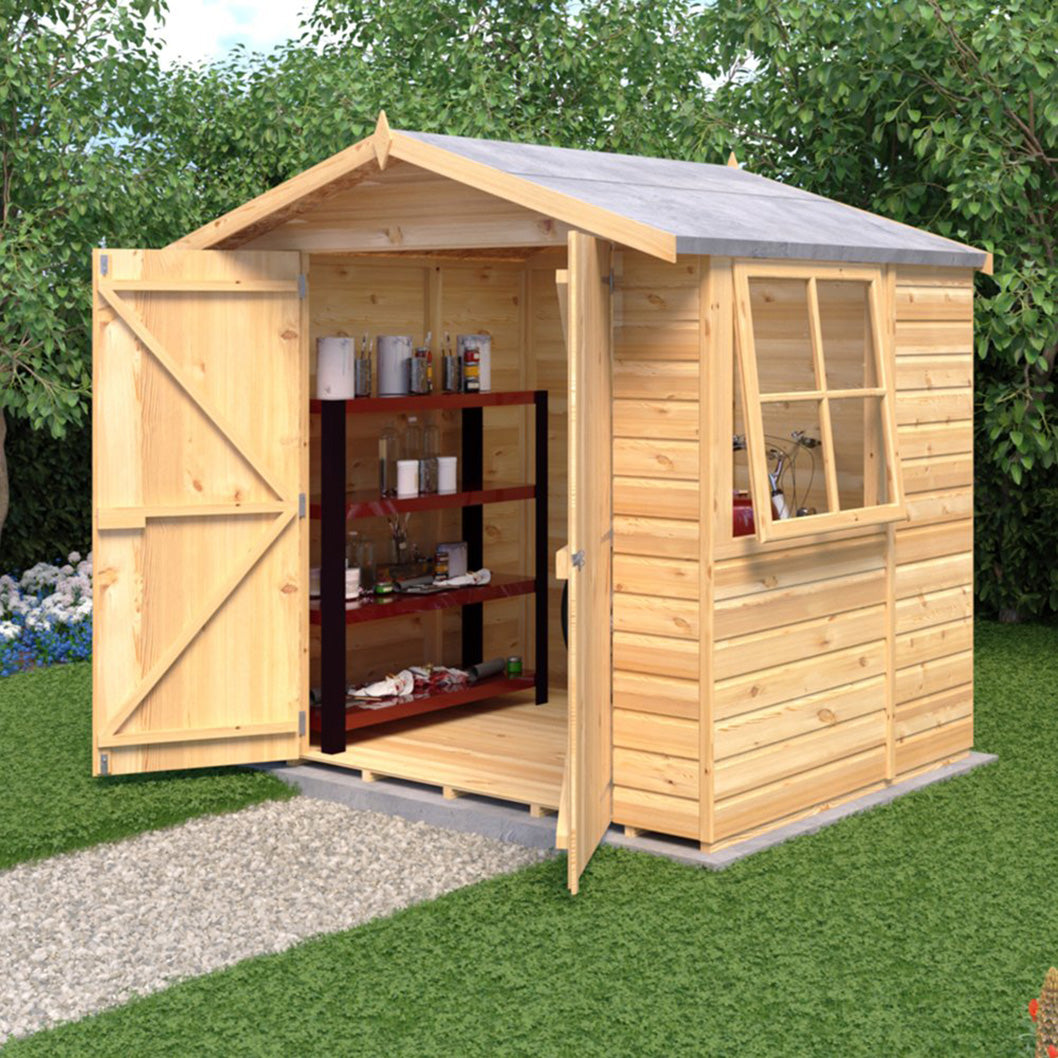 One of its standout features is the large opening window, which can be positioned in six different locations to suit your garden layout and lighting preferences. Wide double doors provide easy access, making it simple to manoeuvre larger items in and out. Supplied with a dip-treated base coat for initial protection, the shed is ready for you to add your chosen preservative after assembly for long-term durability.