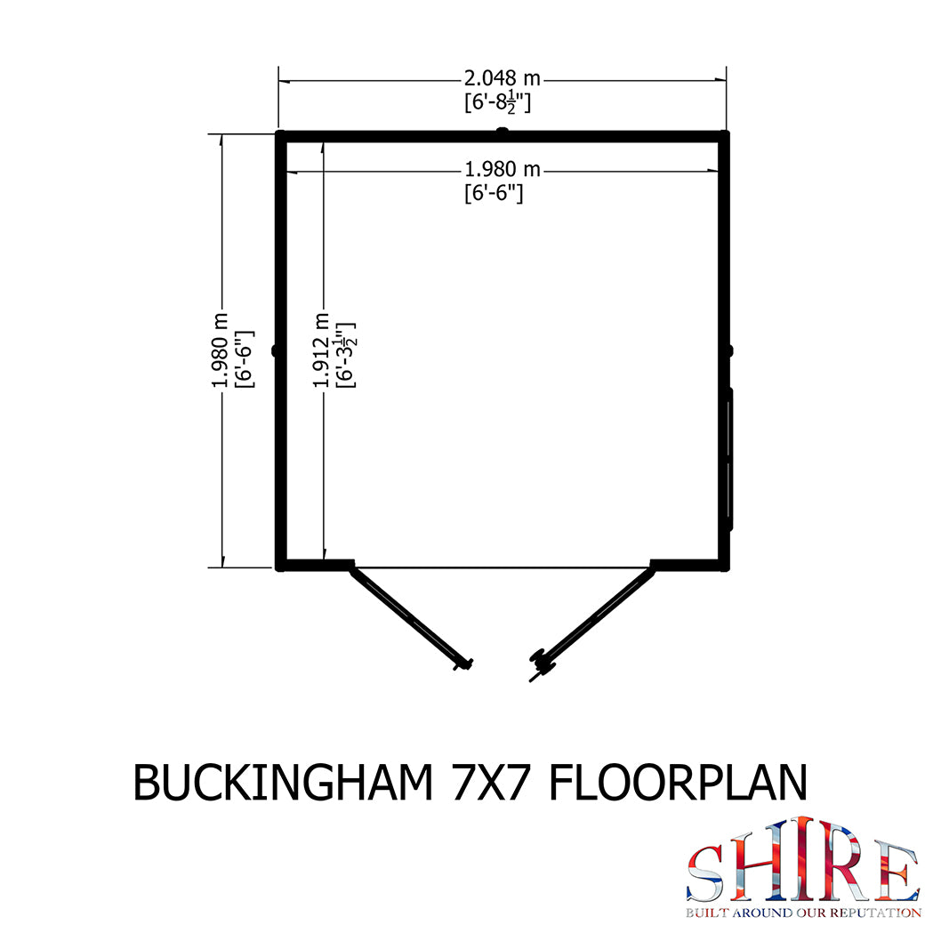 Shire Buckingham 7x7ft Double Door T&G Wooden Summerhouse