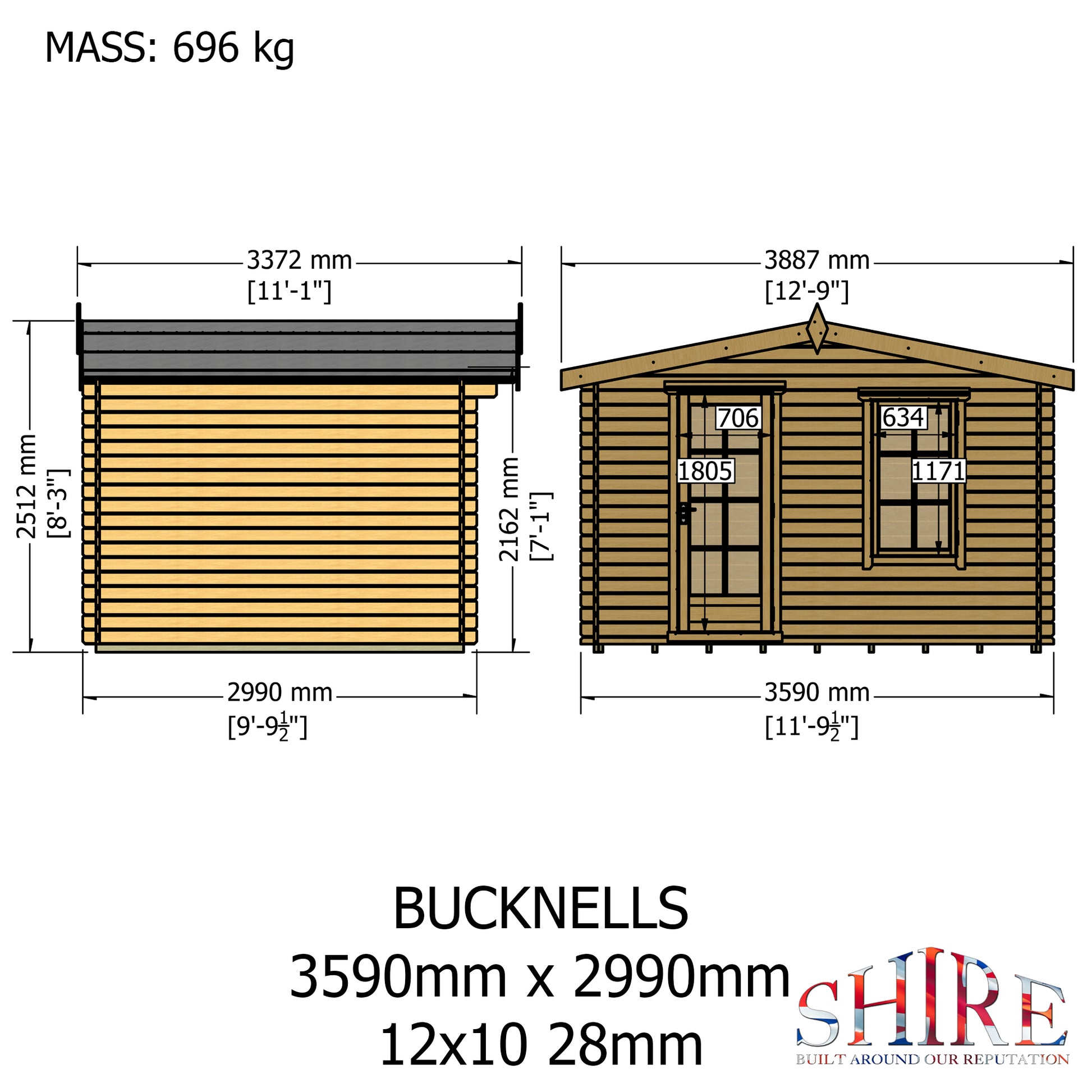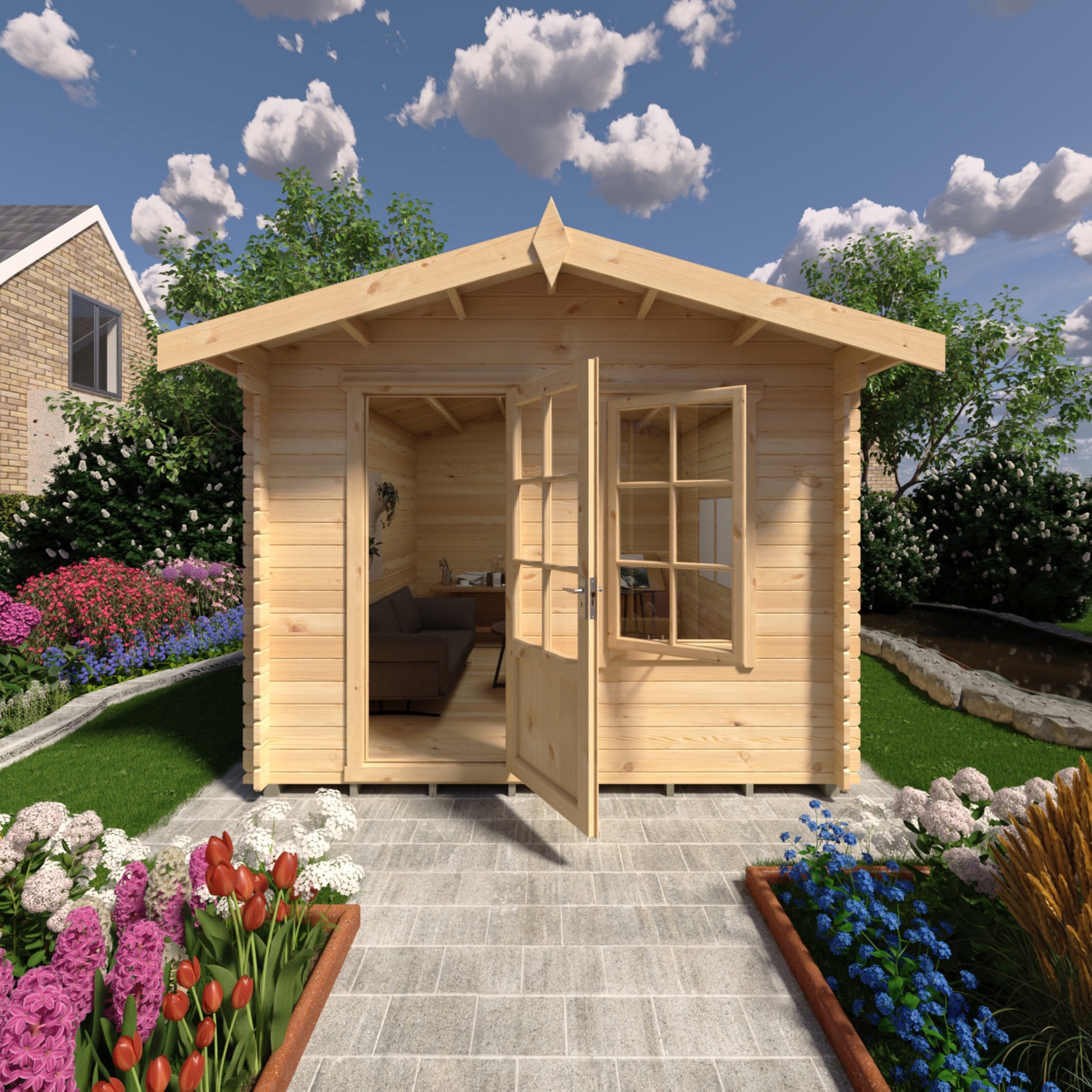 Available in a variety of sizes — 10x8ft, 12x8ft, 10x10ft, 10x12ft, 12x10ft, and 12x12ft — the Bucknells Log Cabin can be tailored to fit spaces both large and small.