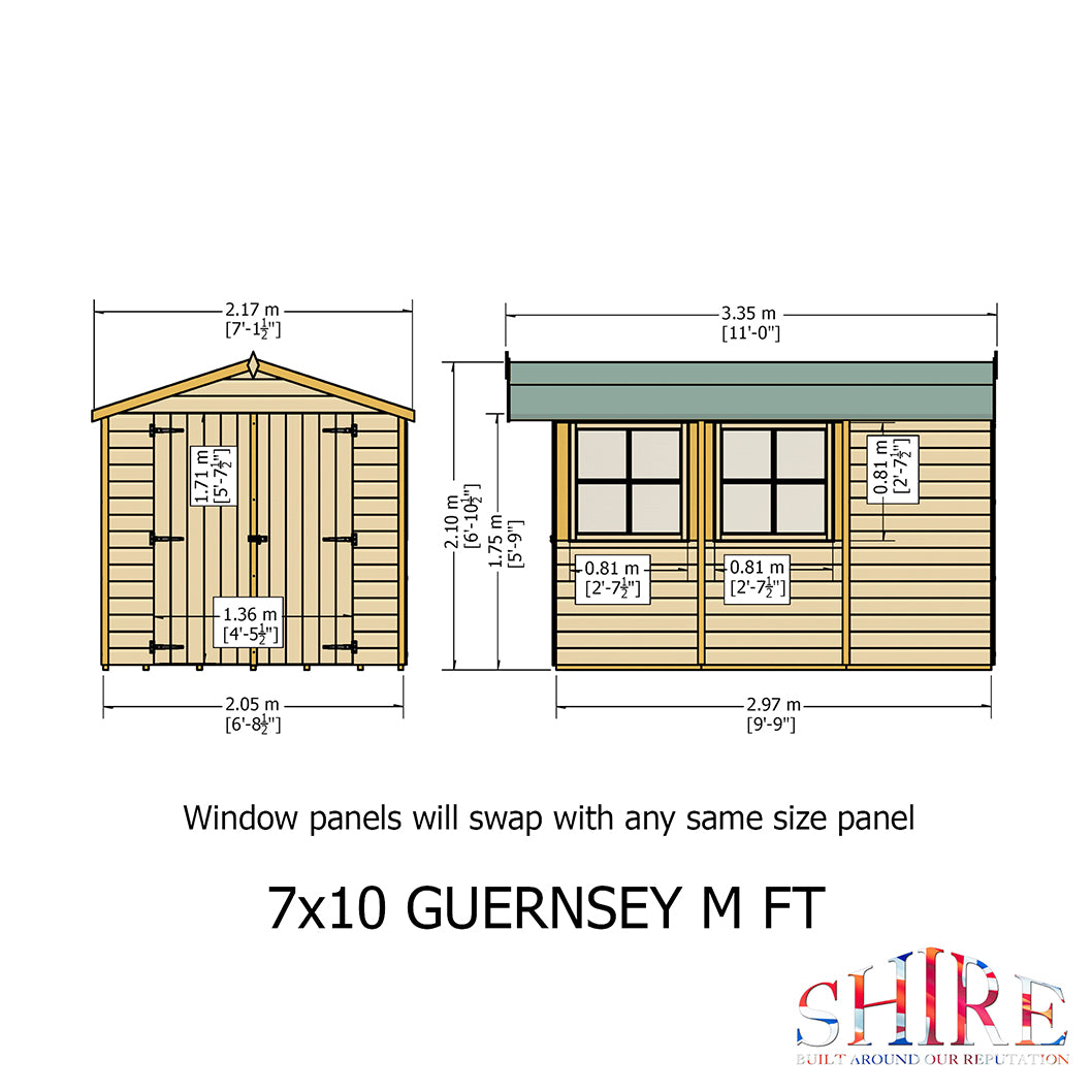 Shire Guernsey 7x10ft Tongue & Groove Double Door Apex Wooden Shed is a spacious, well-built garden building designed to combine practicality with timeless style. Perfect for storing large garden equipment, bicycles, tools, and outdoor furniture, it offers excellent accessibility thanks to its wide double doors.