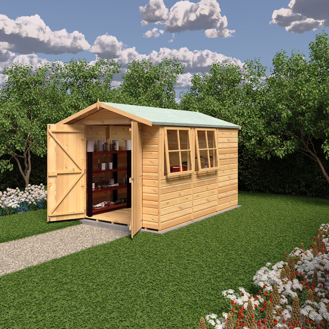 Crafted from durable tongue and groove cladding, the Guernsey provides a strong and weather-resistant structure that’s built to last. A matching tongue and groove floor is included for added strength, while the solid sheet apex roof ensures effective water runoff and protection from the elements.