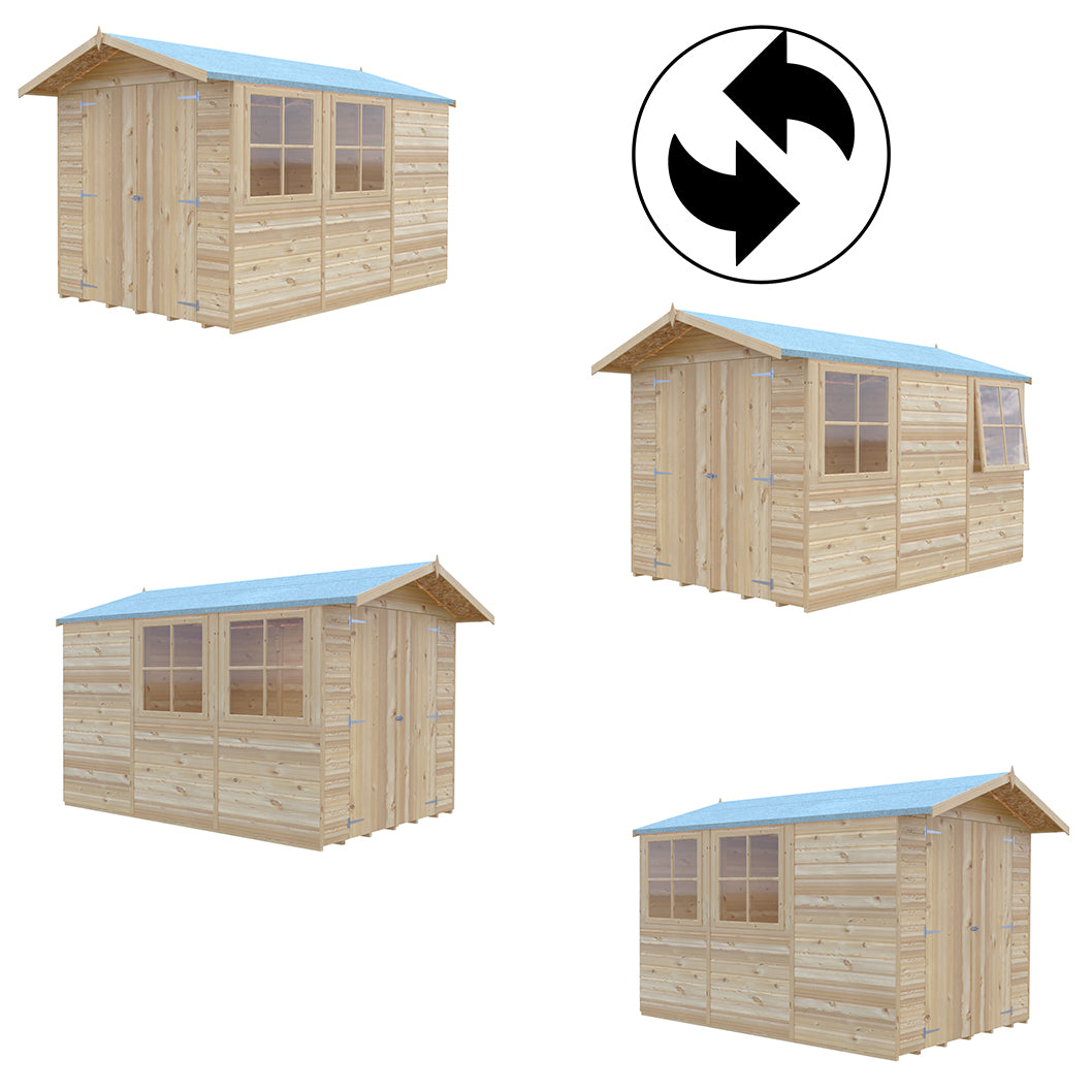 Two large opening windows flood the interior with natural light and can be positioned in any of eight possible locations, giving you the flexibility to tailor the shed to your garden’s layout. The shed is supplied with a dip-treated base coat for initial protection, with a pressure-treated version also available for even greater durability.