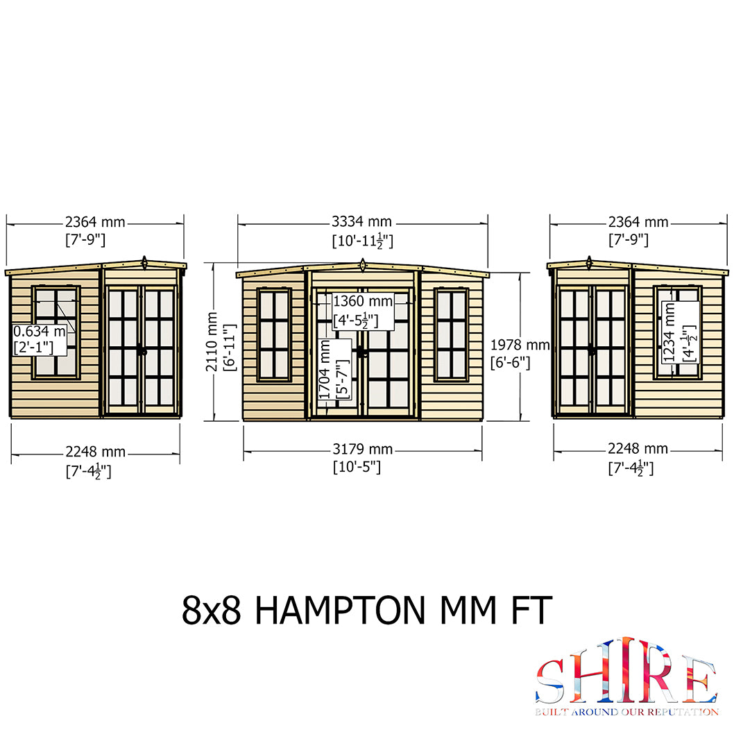 Shire Hampton 8x8ft Corner Double Door T&G Wooden Summerhouse