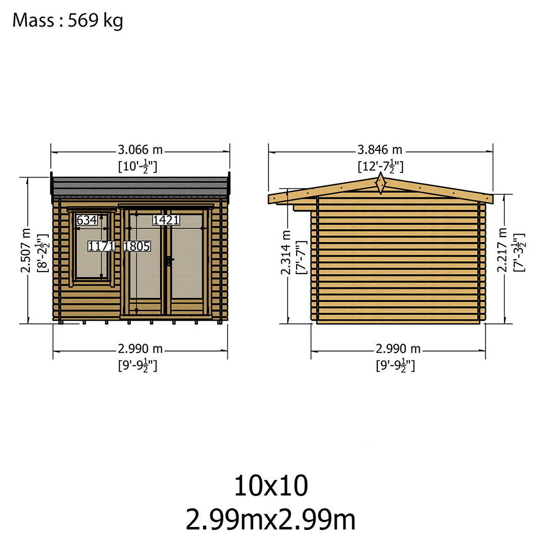 Available in a range of sizes — 8x10ft, 8x12ft, 10x10ft, 10x12ft, 12x10ft, and 12x12ft — the Marlborough Log Cabin can be tailored to fit gardens of all shapes and sizes.