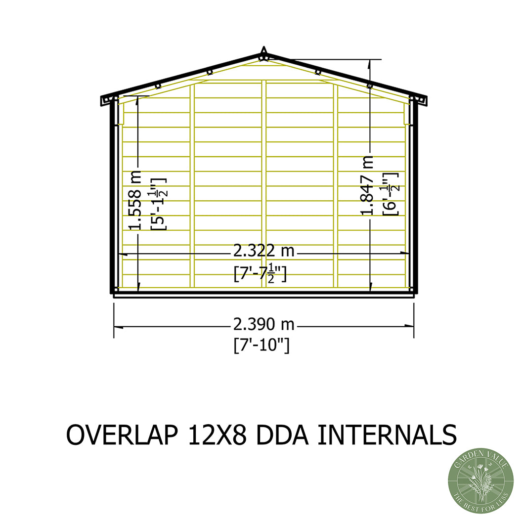 Shire Overlap 12x8ft Value Double Door Wooden Shed is a large and versatile garden building, offering generous storage space for everything from lawnmowers and garden tools to bicycles, outdoor furniture, and seasonal equipment. Its wide double doors allow easy access for bulky items, while the flexibility to position the doors at either end means you can tailor the shed layout to suit your garden.
