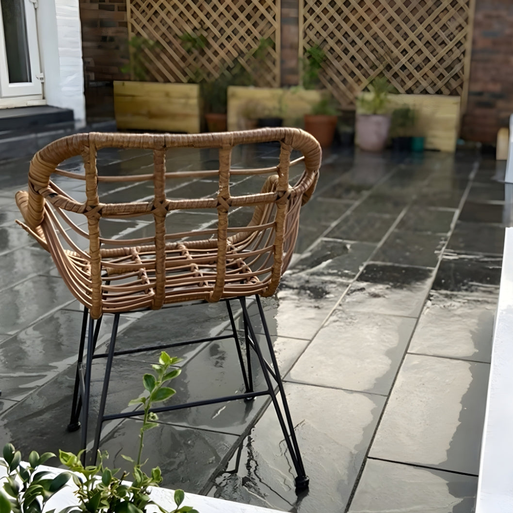 Every slab is calibrated to a consistent 20mm thickness, ensuring a smooth installation process and a clean, even finish. As a natural stone, each piece will display slight variations in colour and pattern—part of the timeless charm that makes slate such a popular choice. You’ll notice the colours deepen beautifully when wet and soften when dry, giving your patio attractive character throughout the seasons.
