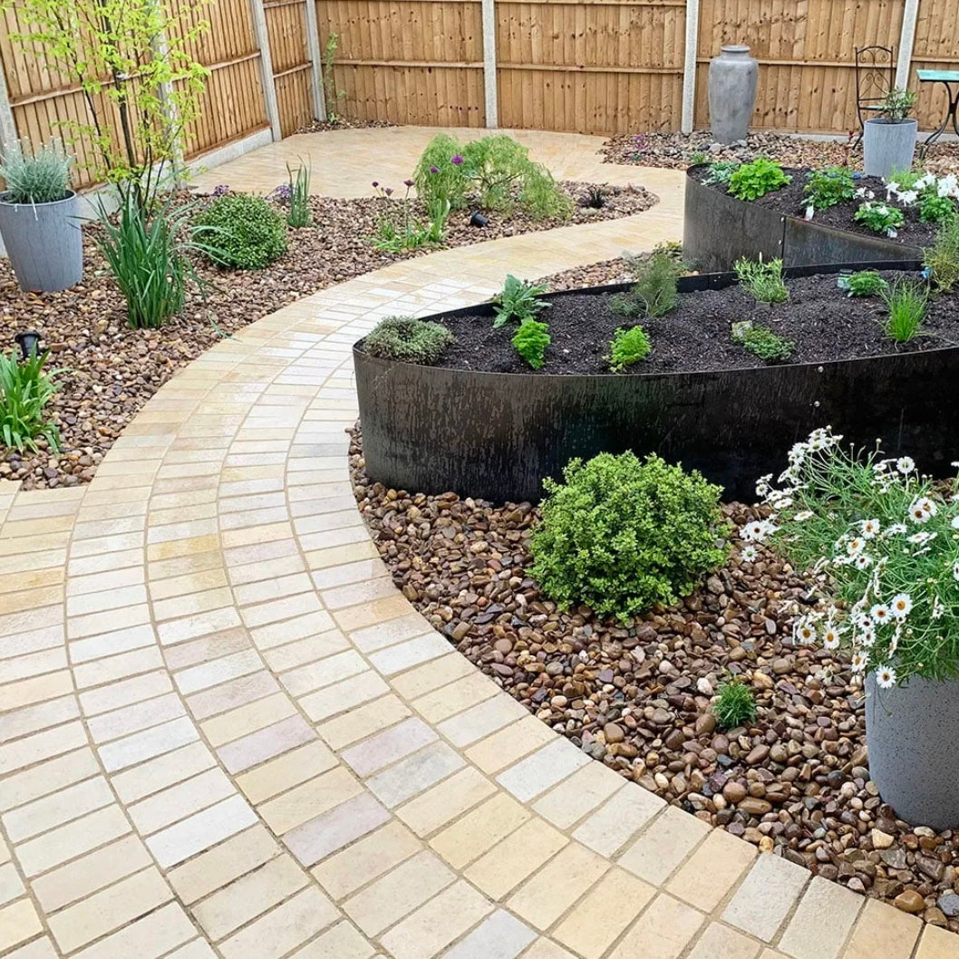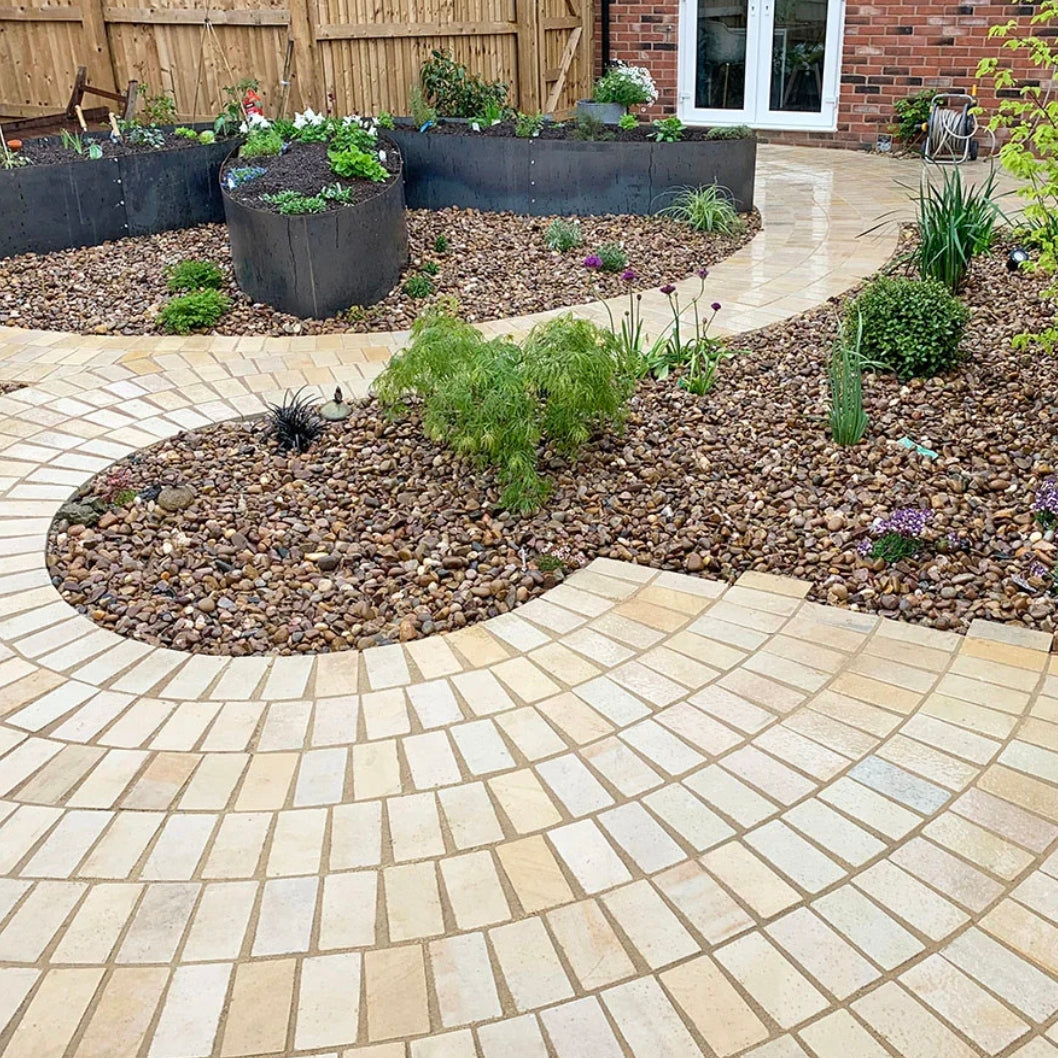 Each sett is **crafted from high-quality natural sandstone**, ensuring durability and strength to withstand heavy foot traffic and the challenges of the **British climate**. The 40mm thickness offers excellent stability, while the naturally **slip-resistant surface** makes them a safe and reliable option for outdoor use. These setts are designed to retain their beauty through every season — from sun to frost — requiring very little maintenance.