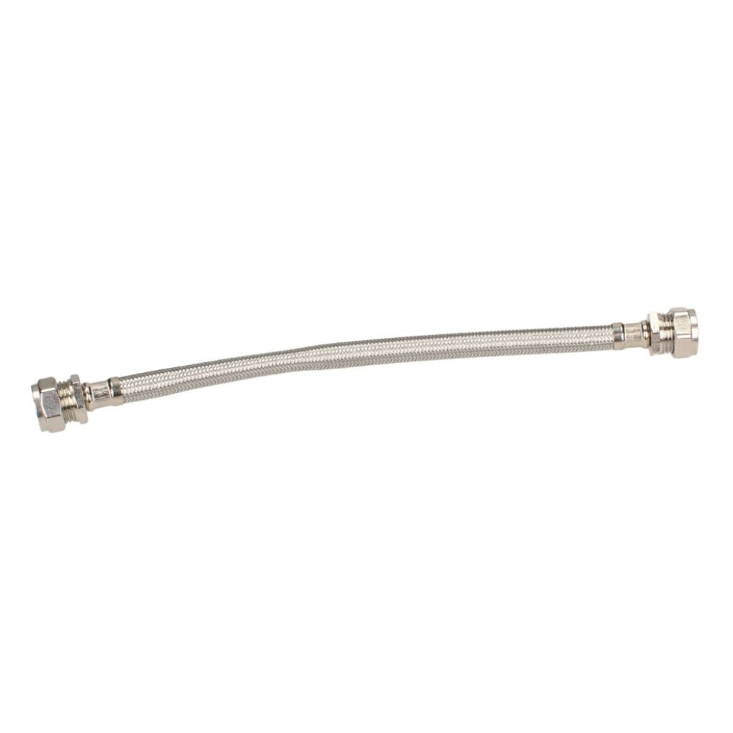 The V&G Compression 15mm x 15mm Flexible Tap Connector is a simple yet effective solution for connecting copper pipework to taps or other fixtures where flexibility and ease of installation are a priority. Measuring 300mm in length and featuring a 10mm internal bore, this flexible hose is ideal for use in tight spaces where rigid pipework may be difficult to fit.