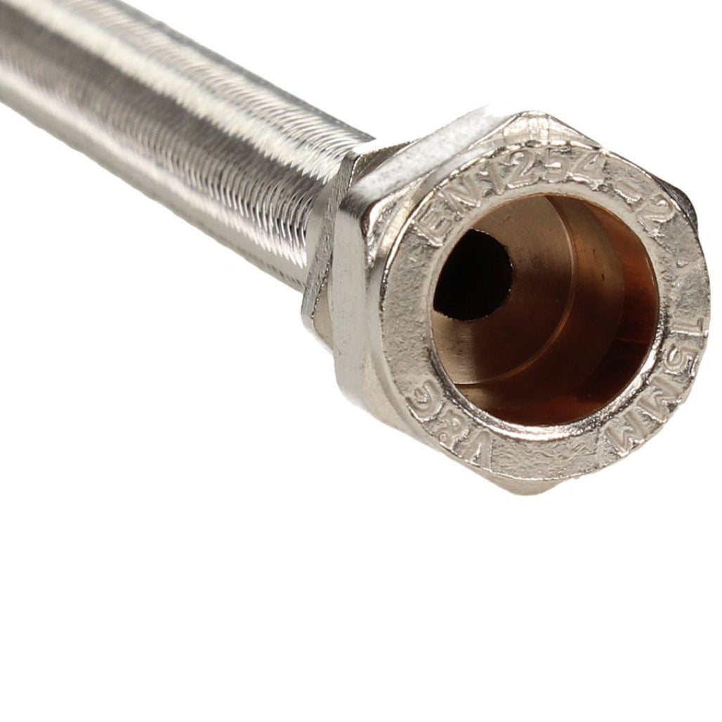 It’s used to connect 15mm copper pipe to a tap or similar fixture where a flexible connection is preferred—especially in installations with limited space or where some movement is expected.
